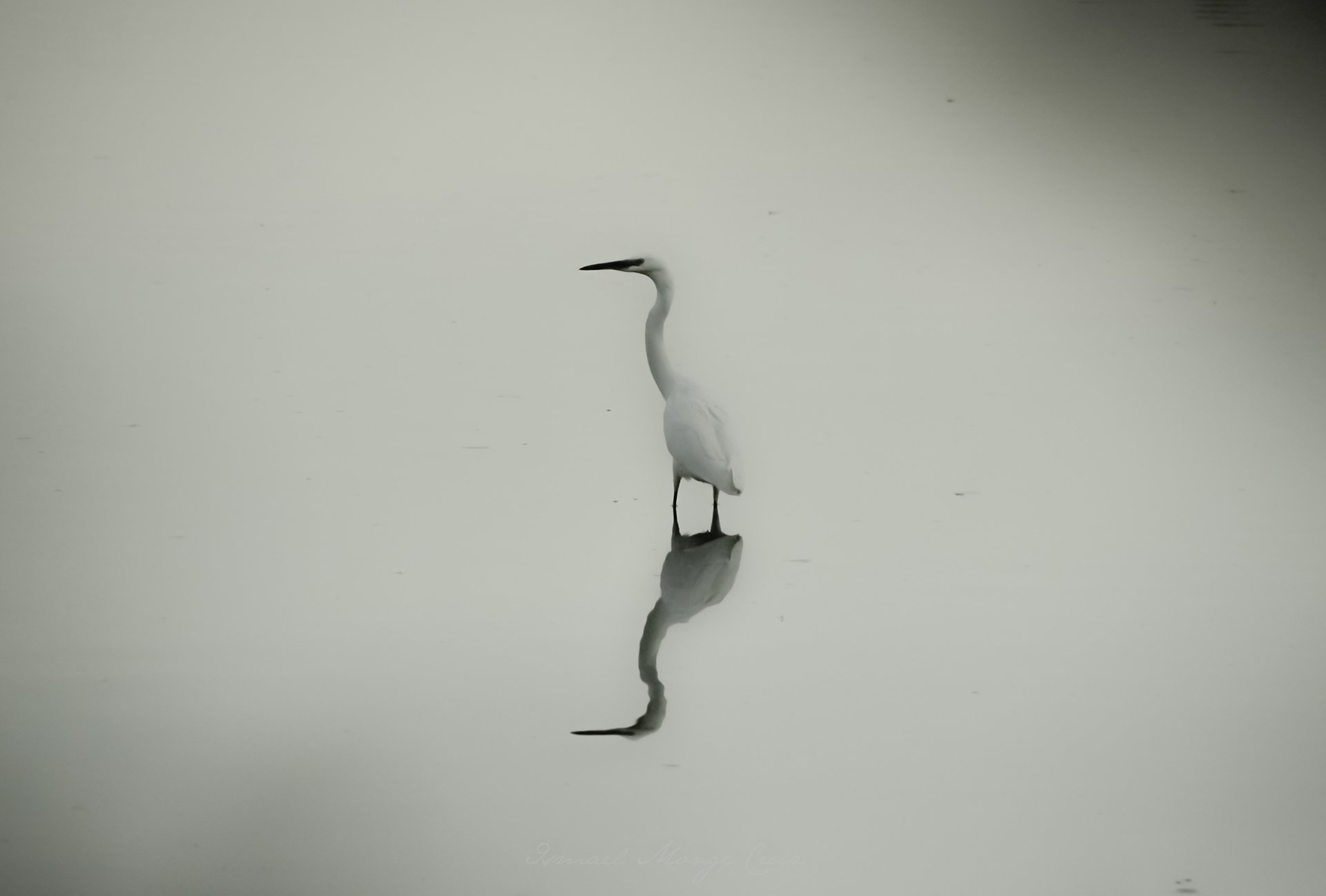 El pájaro se sienta en la hierba en un cuerpo de agua