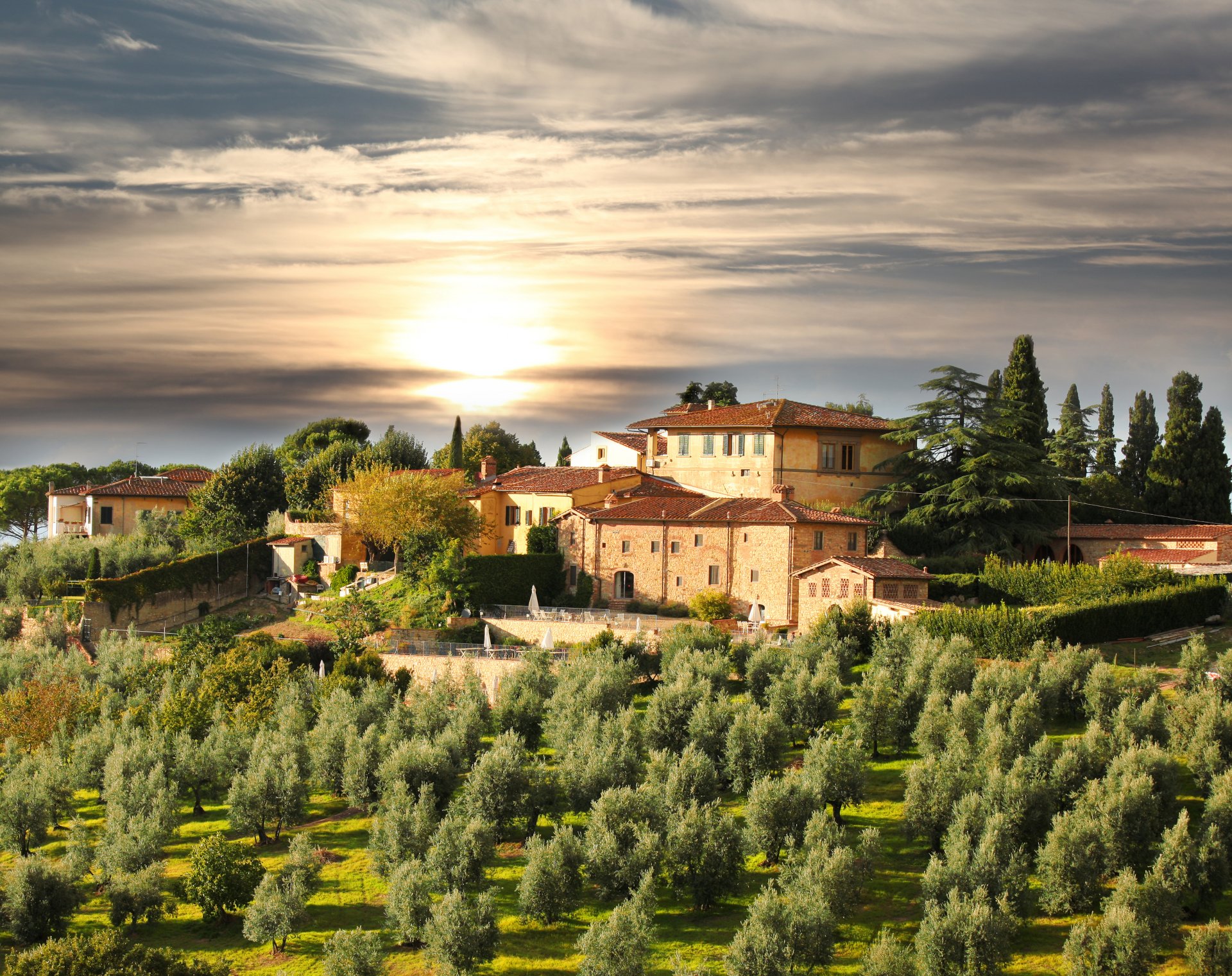 Paisaje de una hermosa puesta de sol en las nubes en la toscanaPaisaje de una hermosa puesta de sol en las nubes en la Toscana