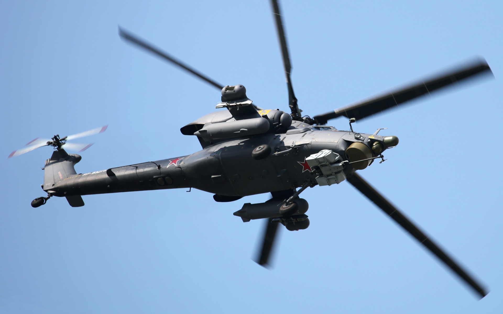 Un soldado estadounidense en uniforme militar corre con un arma con una Mira óptica a un helicóptero