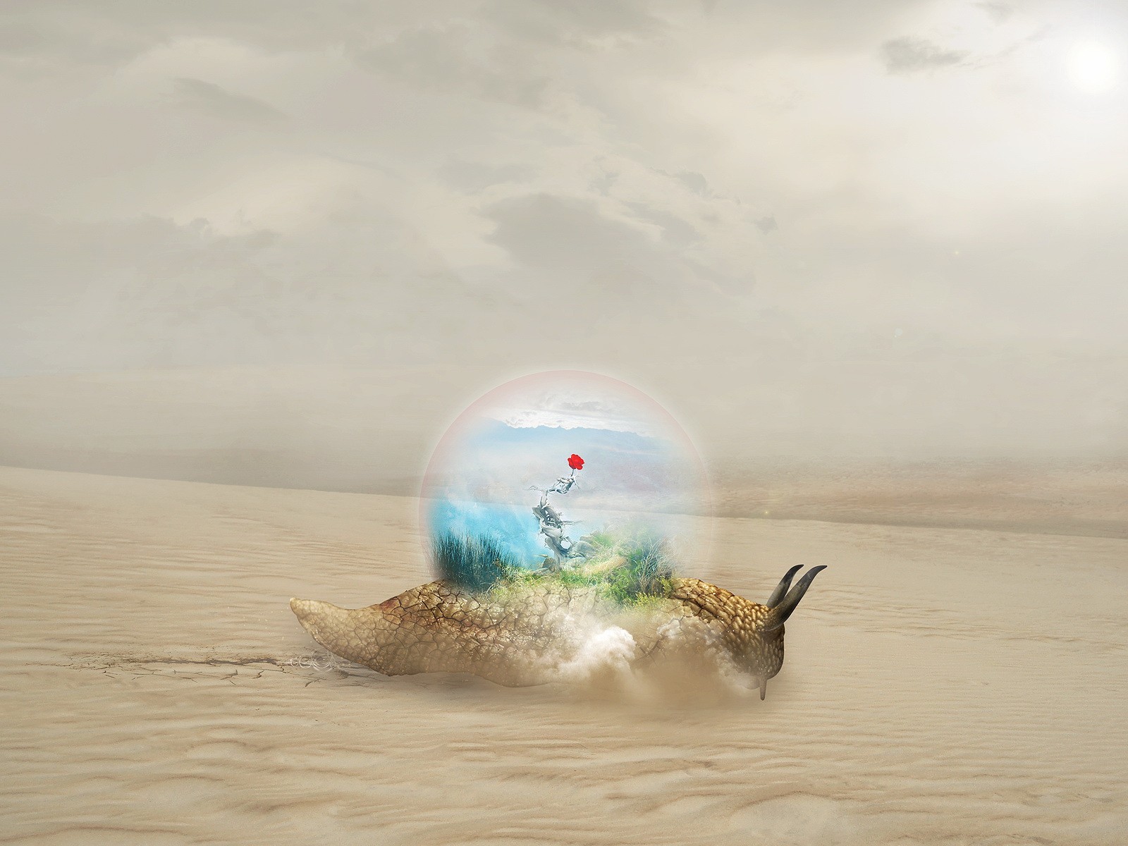 Una rosa en una bola en medio del desierto