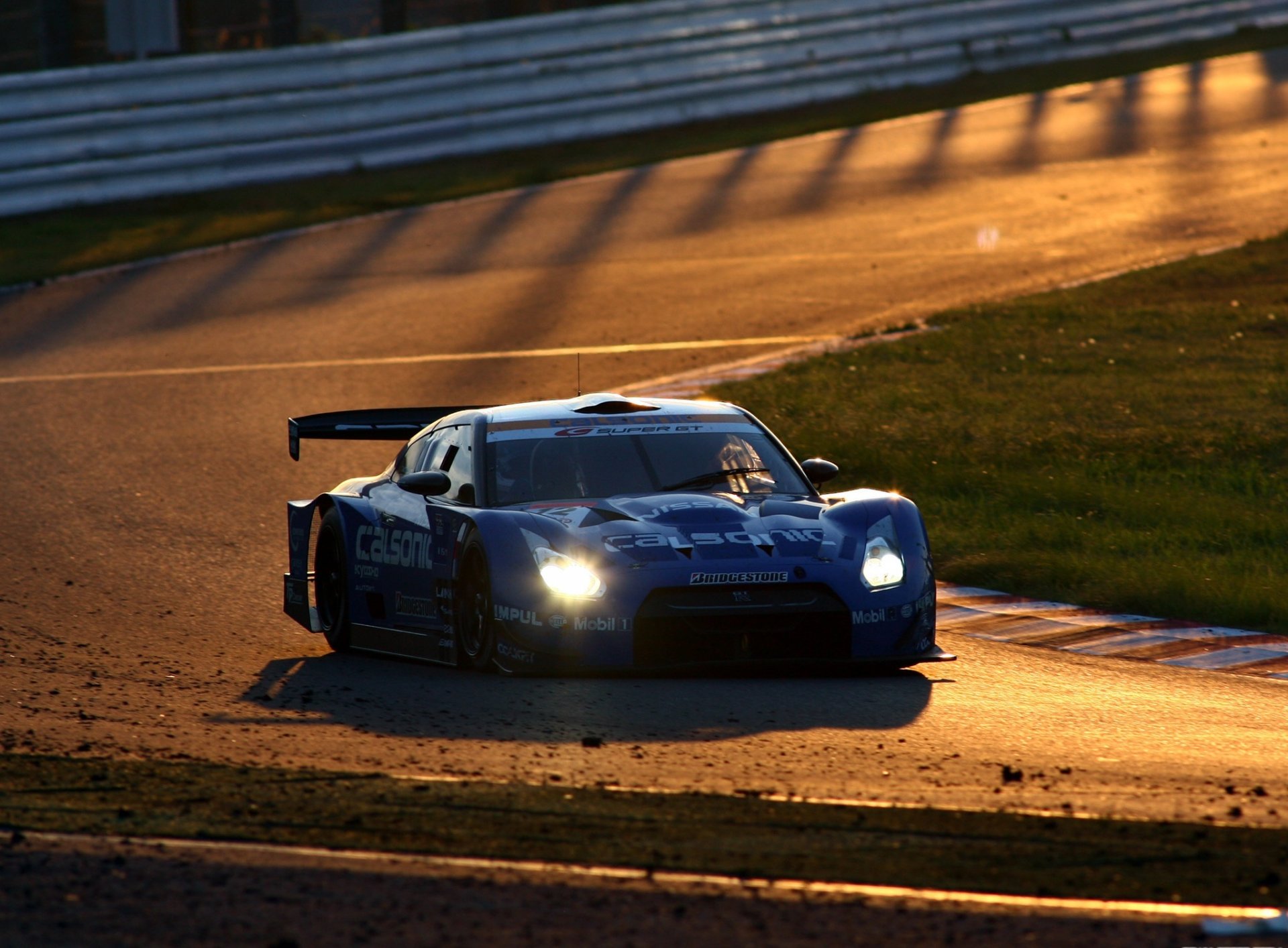 Corvette de alta velocidad en la pista temprano en la mañana. coche deportivo en el sol nacienteCorvette de alta velocidad en la pista temprano en la mañana. Coche deportivo en el sol naciente