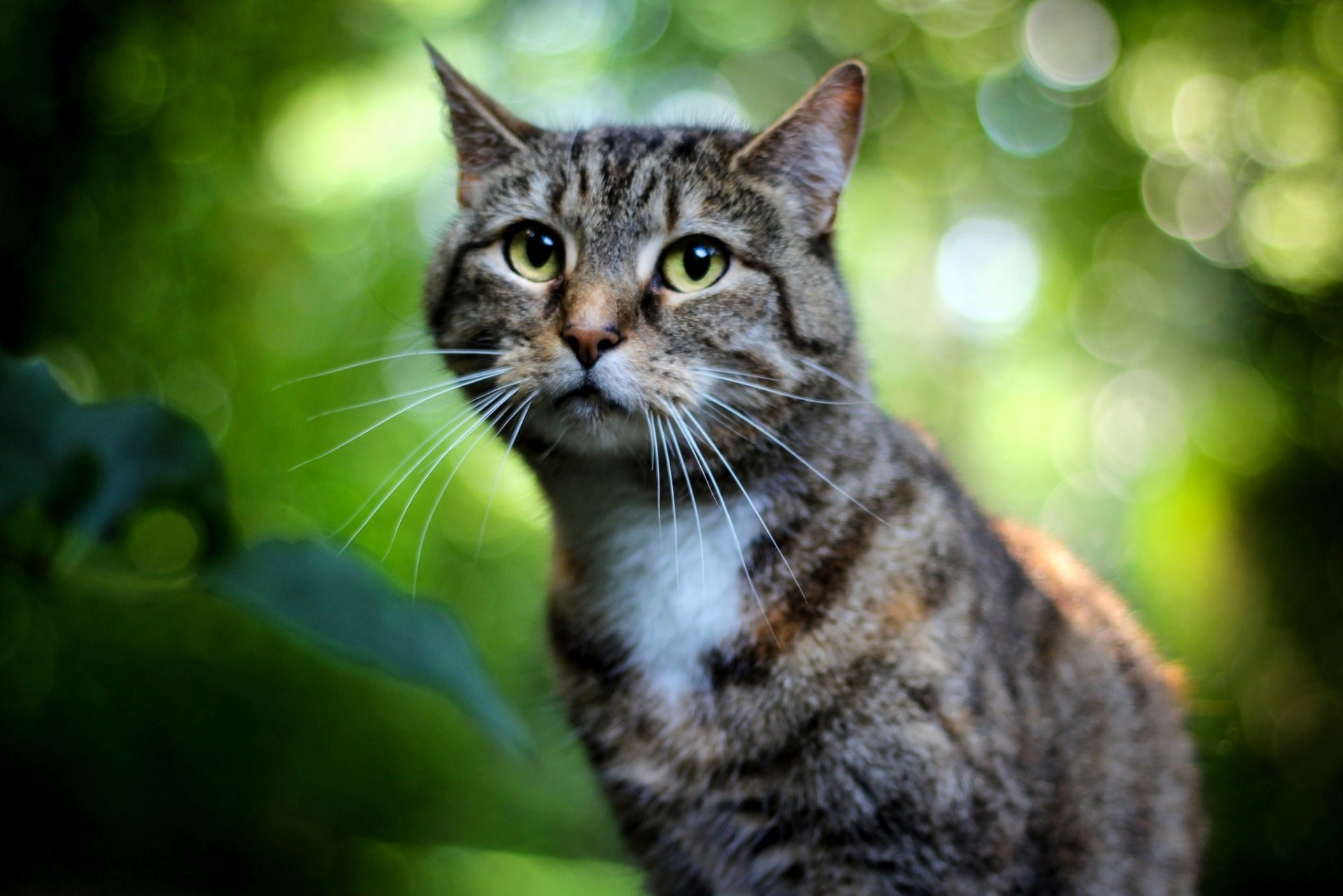 Gatitos pelirrojos y grises tumbados en la hierba verde