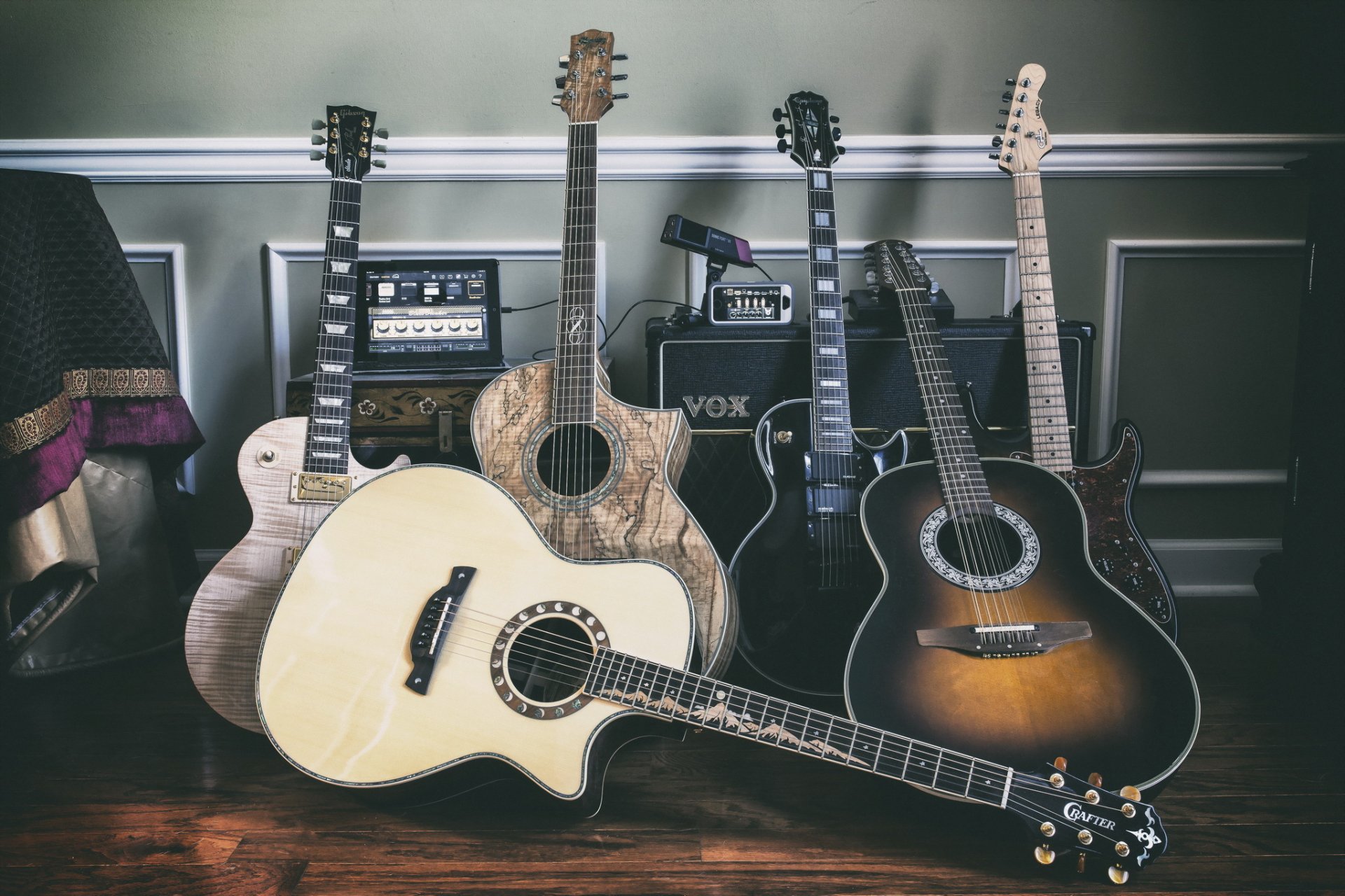 Fondo inusual con guitarras brillantes y pintadas positivamente