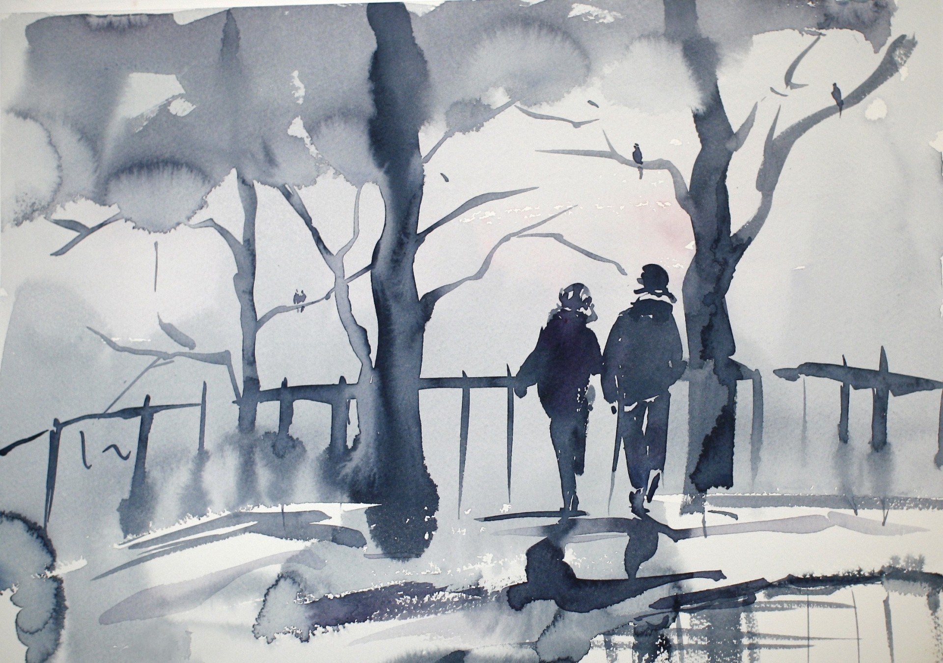 Caminando por el campo de encuentro de la puesta del solCaminando por el campo de encuentro de la puesta del sol