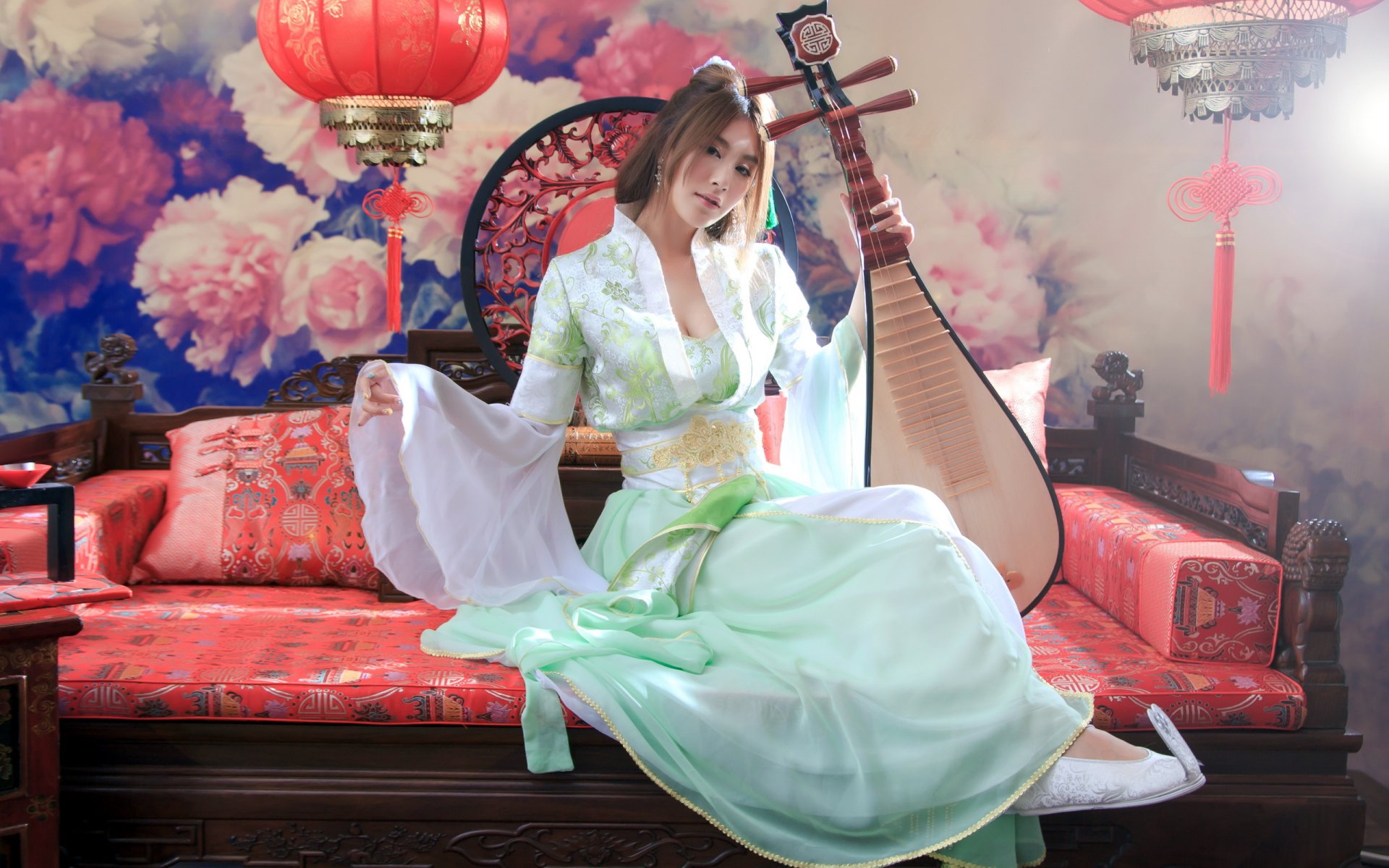Chica con un vestido blanco con una herramienta en la manoChica con un vestido blanco con una herramienta en la mano