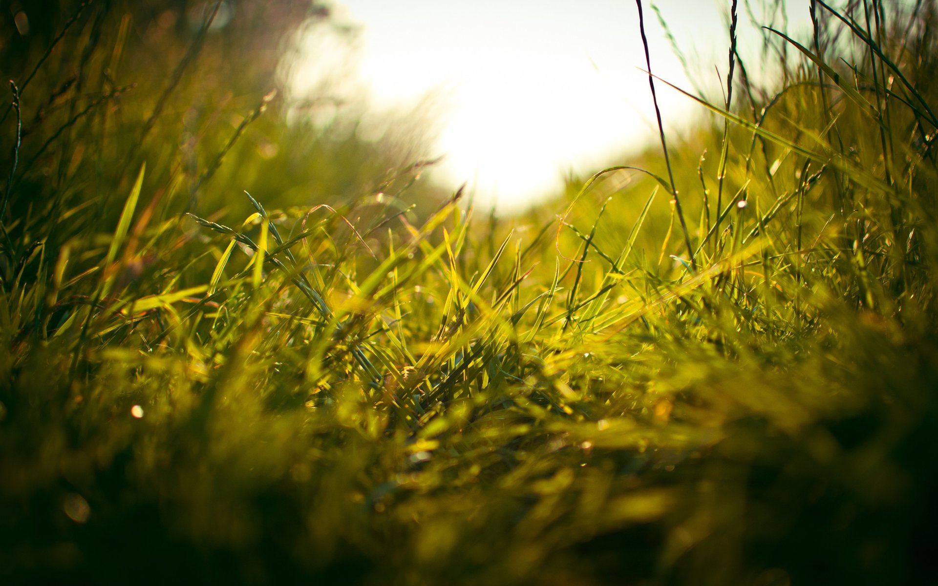 Hierba fresca en el campo al amanecer