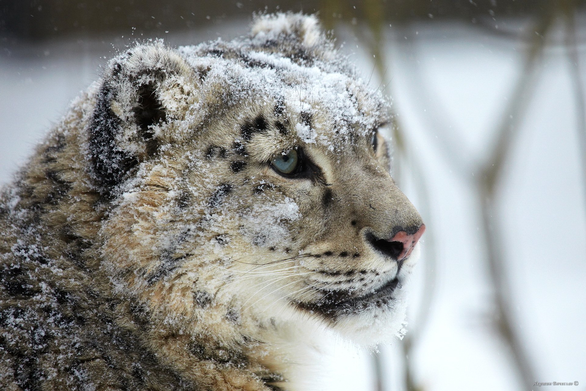 Hocico depredador del leopardo de las nieves inviernoHocico depredador del leopardo de las Nieves invierno