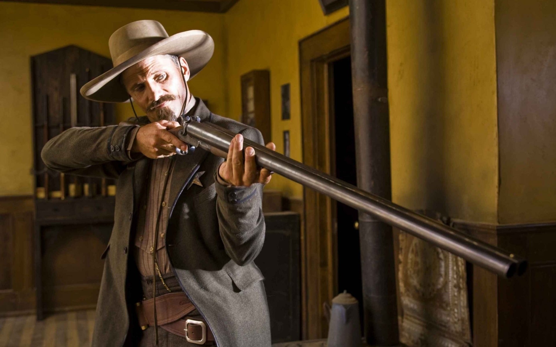 Hombre con un bate con la boca abierta contra una pared de fondo