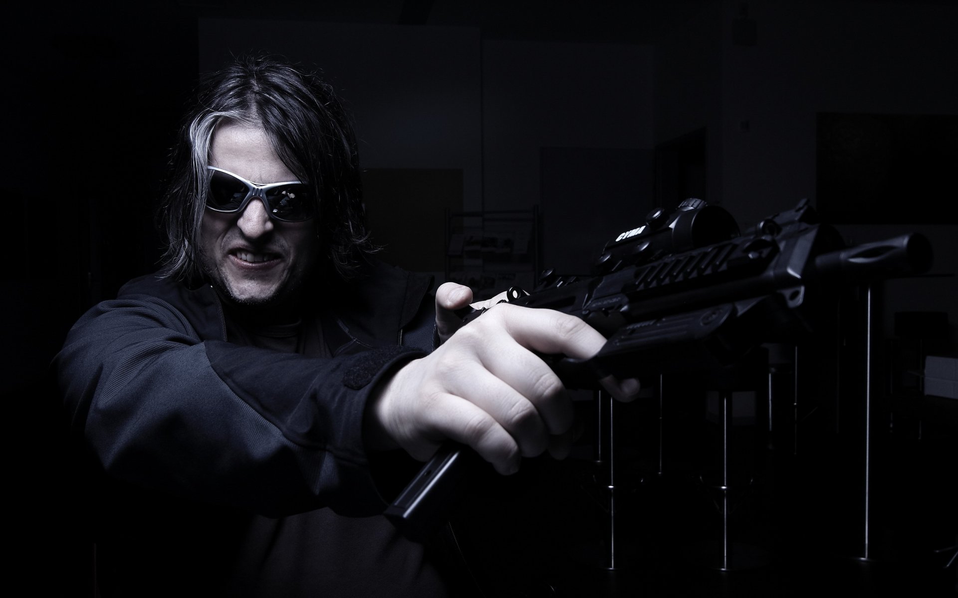 Un hombre con un cigarro y gafas sobre un fondo blanco y negroUn hombre con un cigarro y gafas sobre un fondo blanco y negro