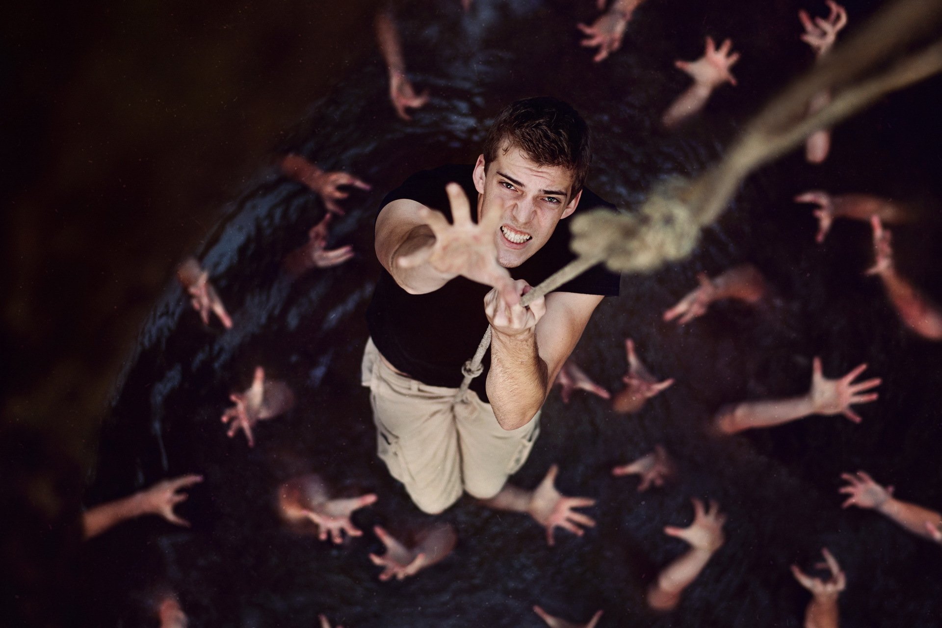 Mano skillet hombre escorpión zanahoria en el ceboMano skillet hombre escorpión zanahoria en el cebo