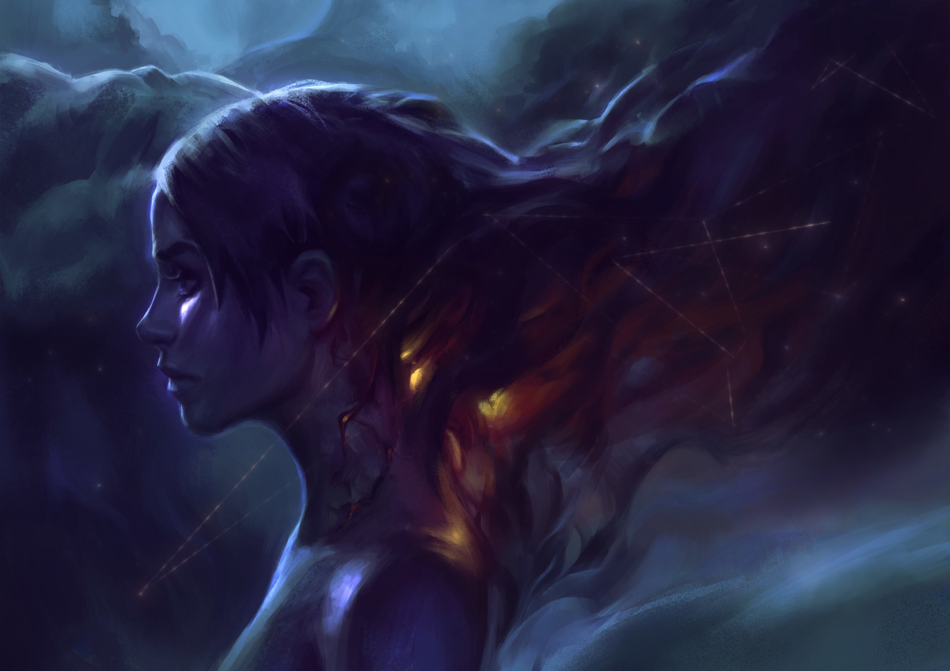 Imagen de una niña sobre un fondo oscuro con hombros descubiertosImagen de una niña sobre un fondo oscuro con hombros descubiertos