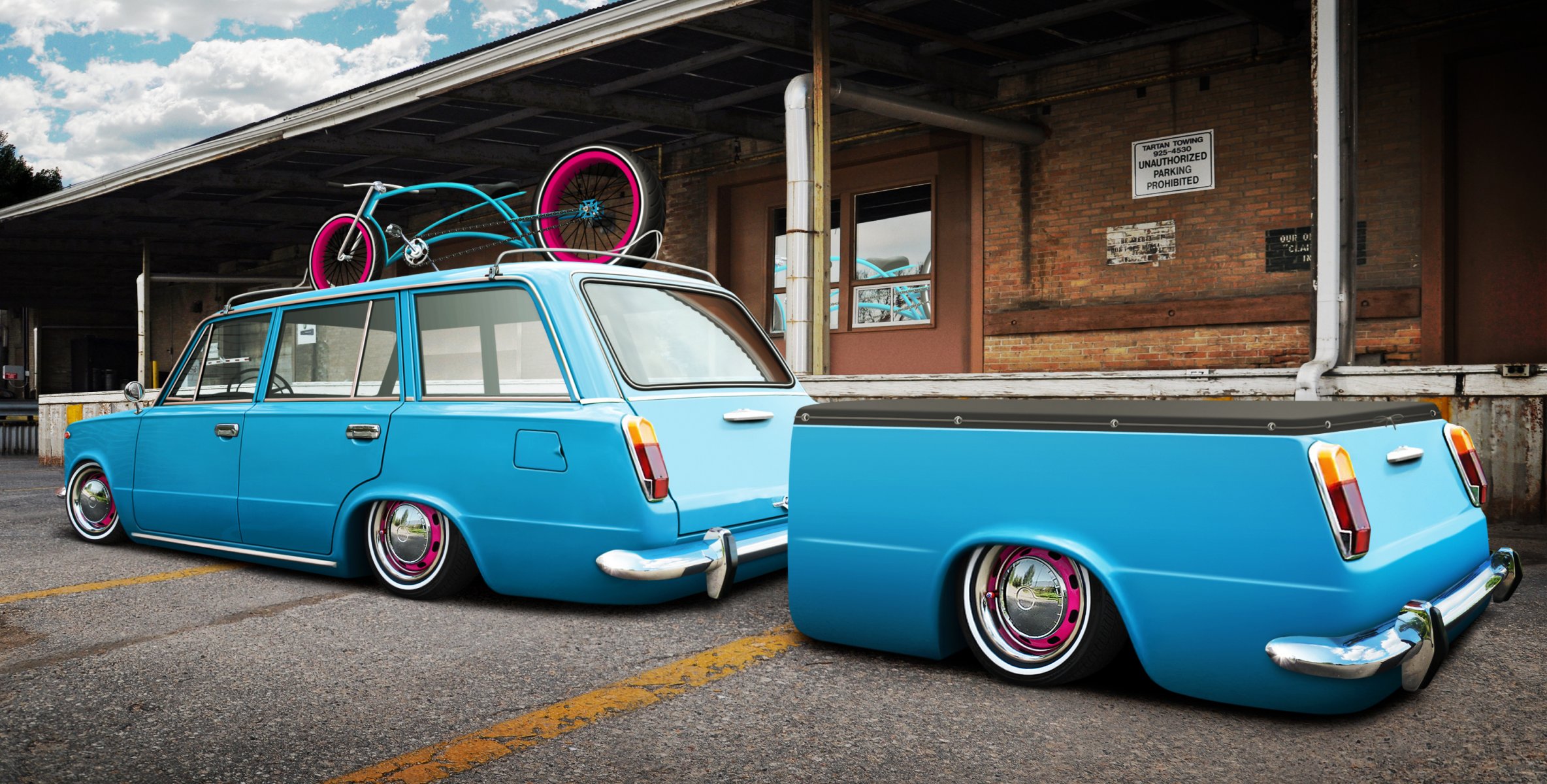 Un jarrón tuneado en medio de la carretera con las puertas abiertasUn jarrón tuneado en medio de la carretera con las puertas abiertas