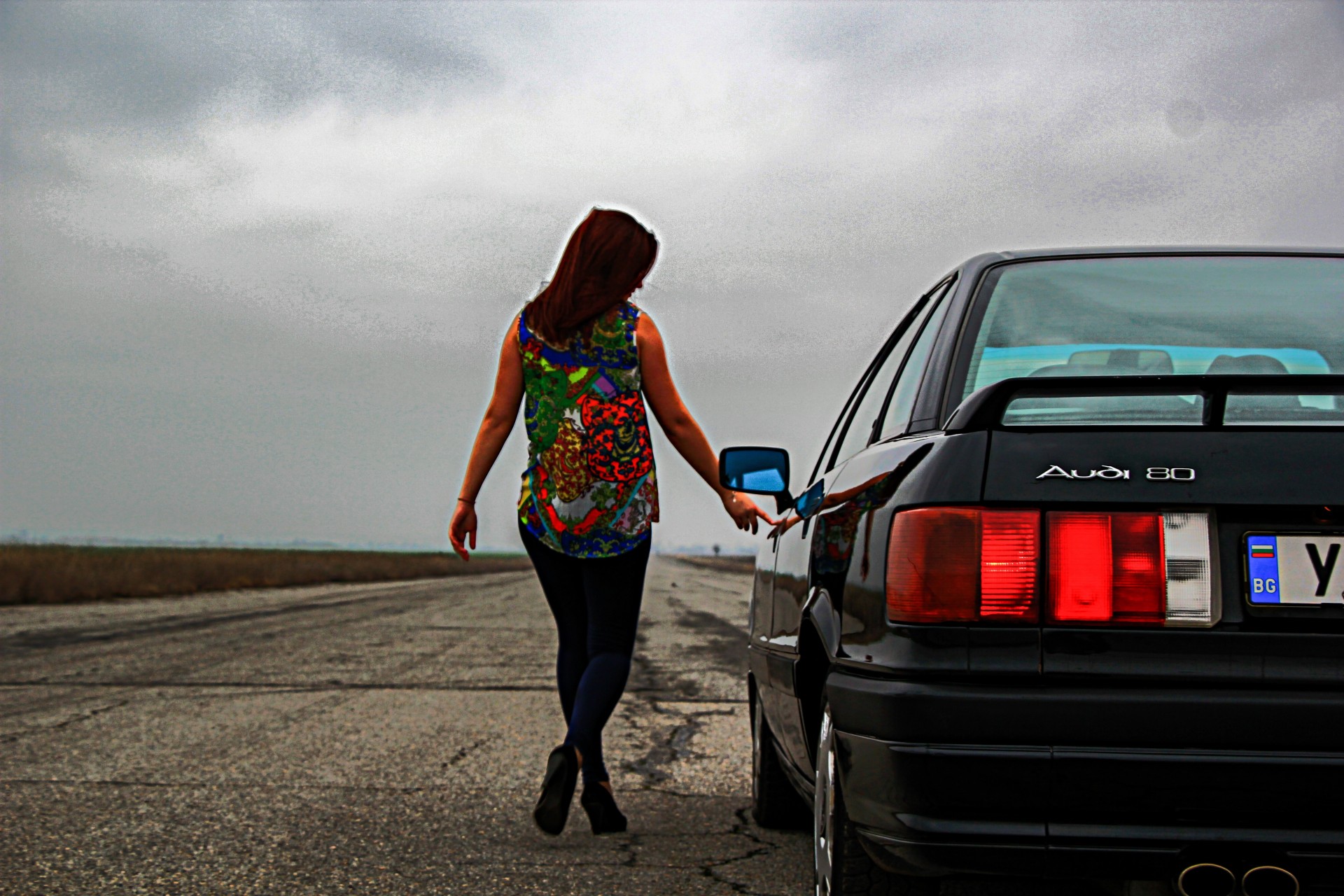 Perro peludo sentado en la acera y mirando a un ladoPerro peludo sentado en la acera y mirando a un lado
