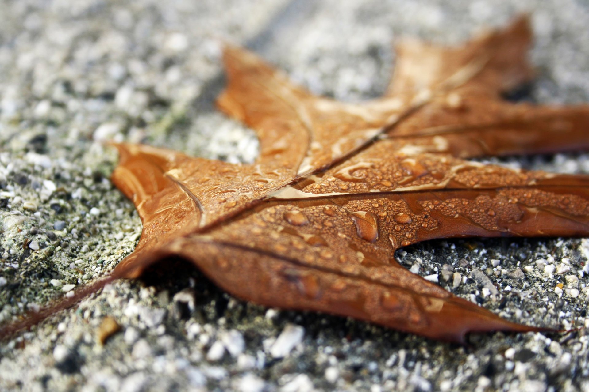 Una hoja con gotas de agua sobre una piedra mojadaUna hoja con gotas de agua sobre una piedra mojada