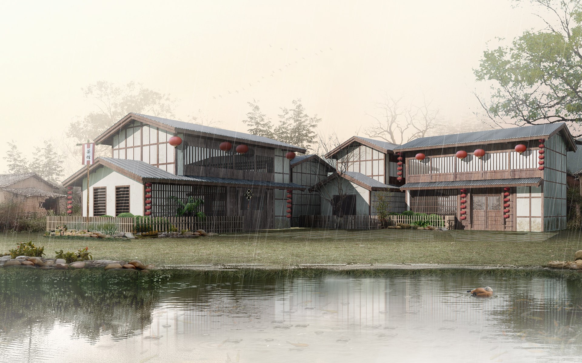 Después de la lluvia, el auto negro está mojado en la casaDespués de la lluvia, el auto negro está mojado en la casa