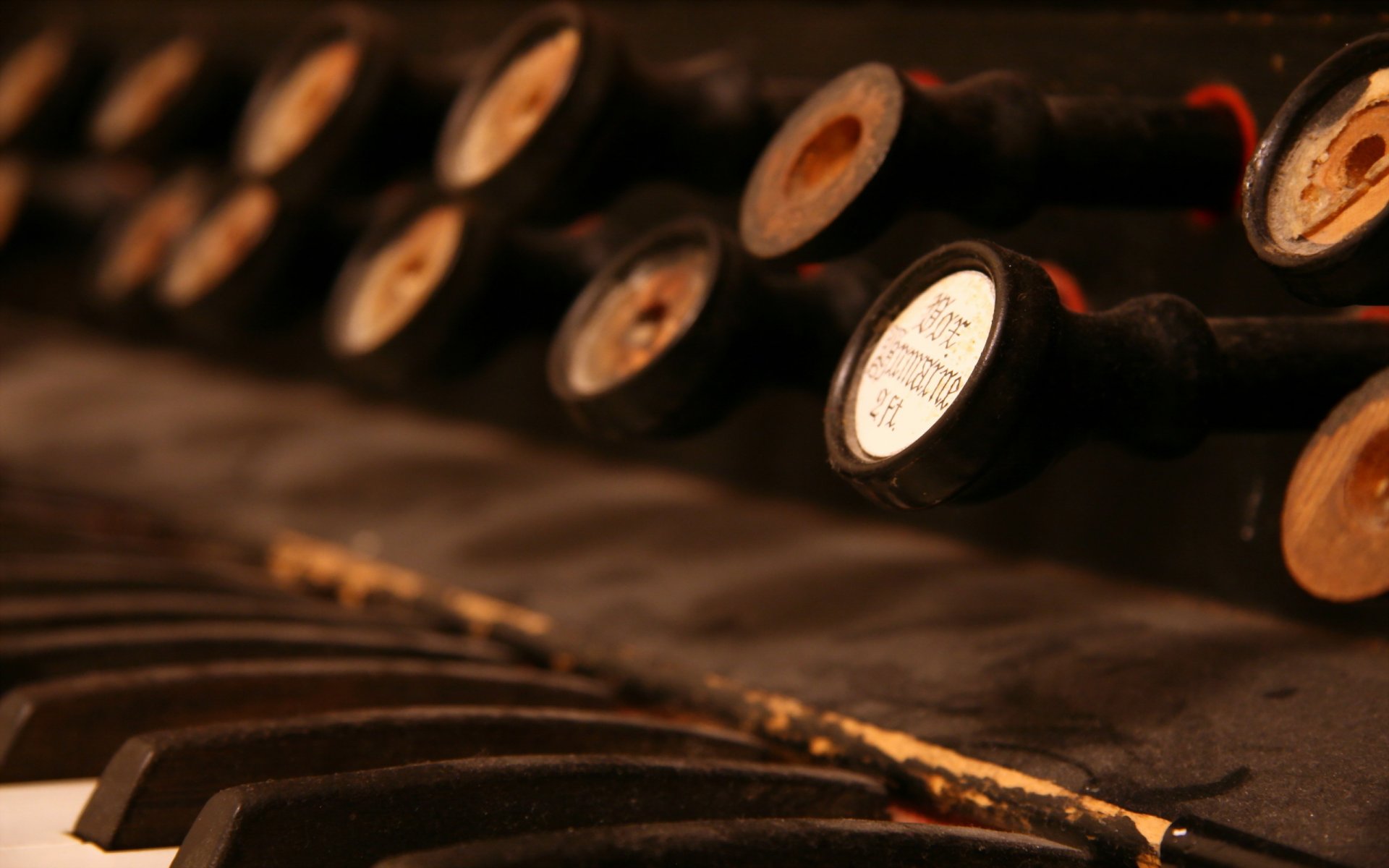Placa con lazo rojo y dos alfileres rojos en la mesa de madera