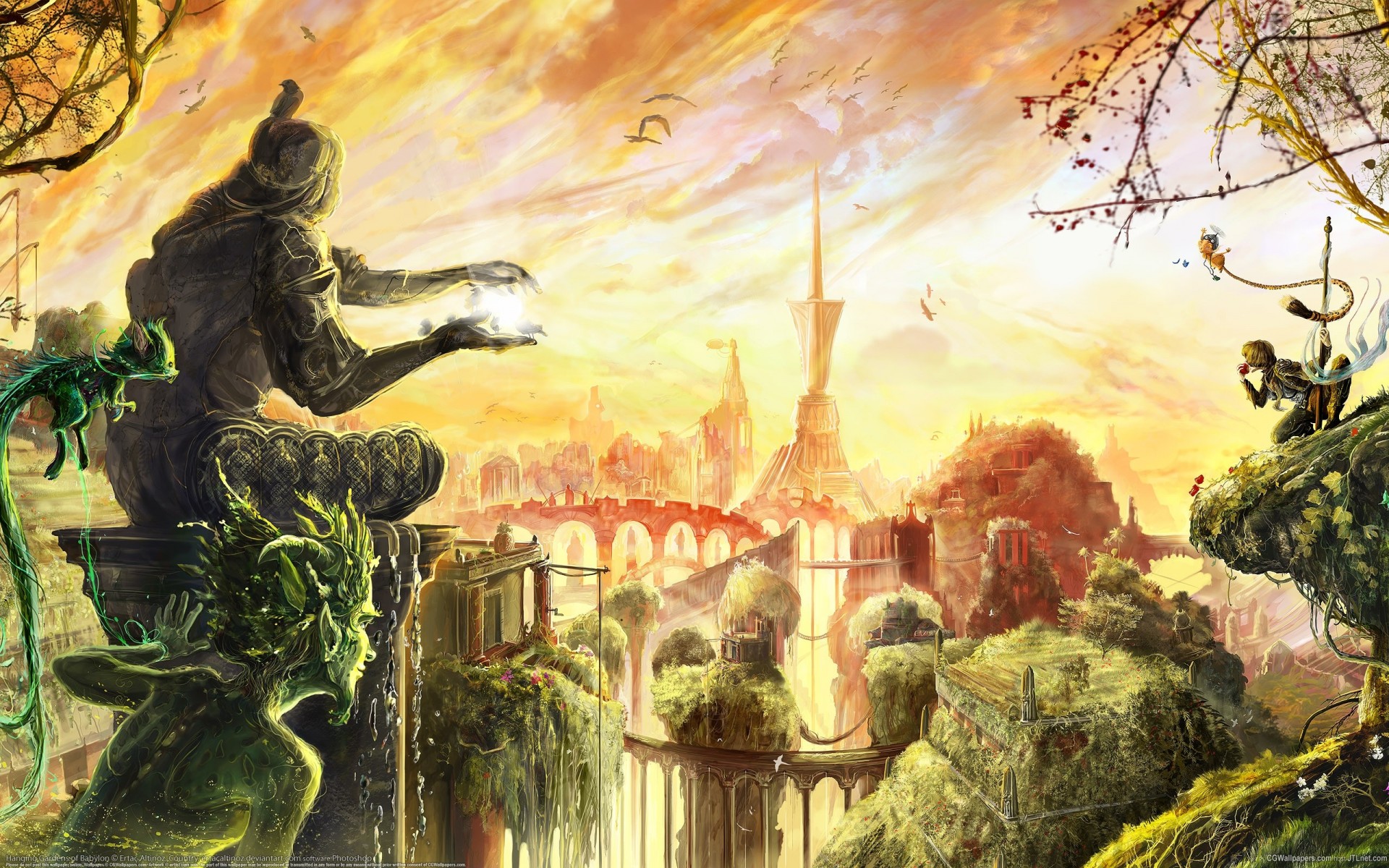Fantasía, una puerta de cuento de hadas rodeada de bosques, con el mar, las montañas y el cielo azulFantasía, una puerta de cuento de hadas rodeada de bosques, con el mar, las montañas y el cielo azul