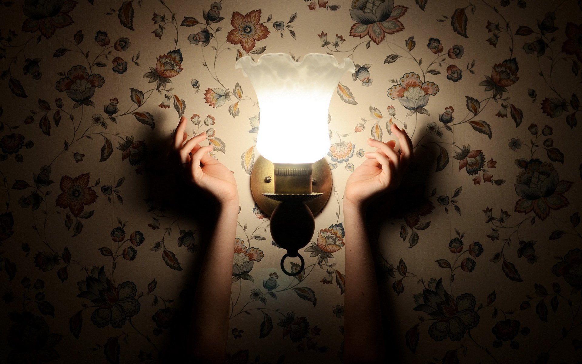 Sesión de fotos de una chica en un vestido oscuro y con pintura en las manos en el agua