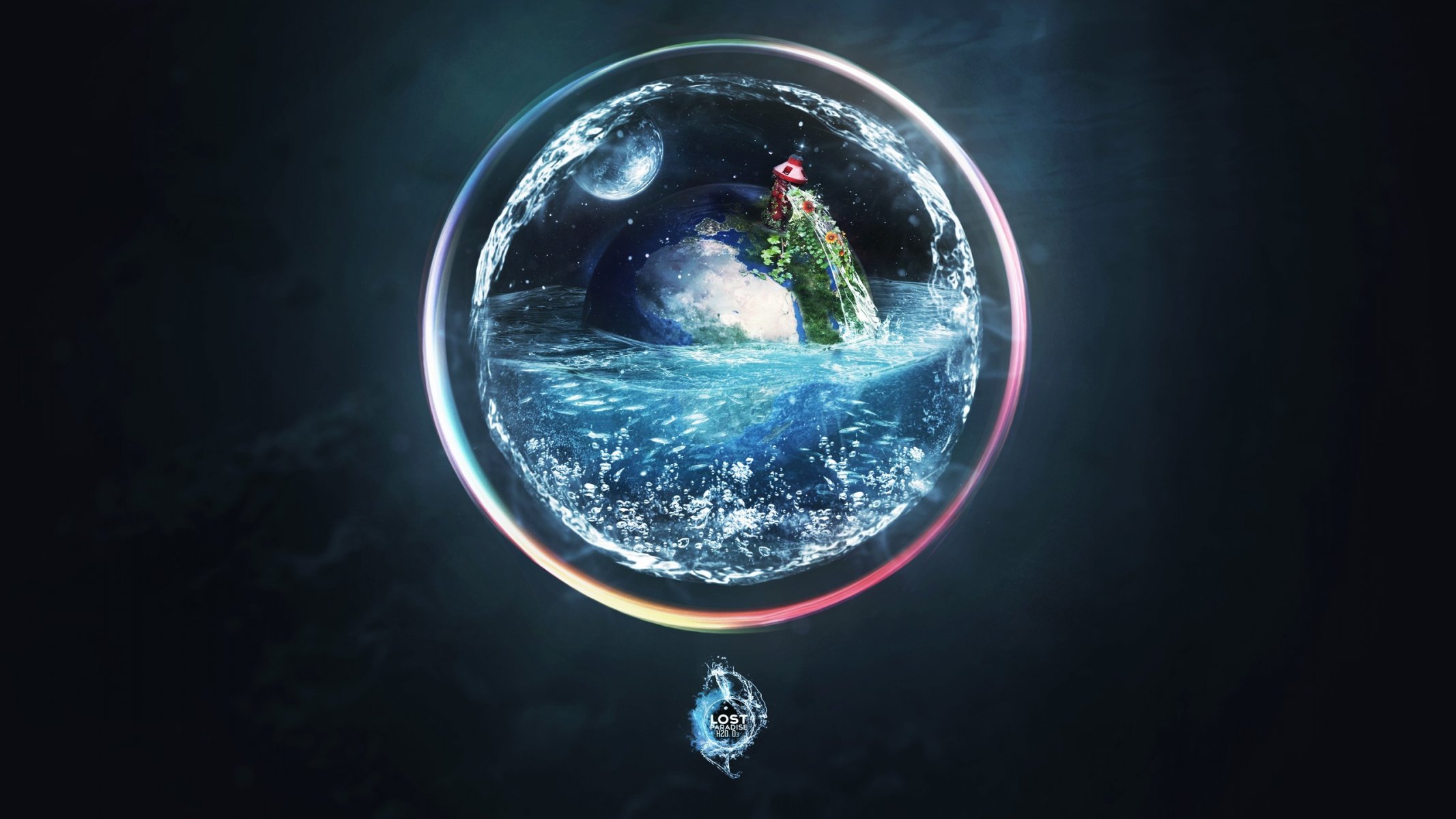Los reflejos son burbujas. fondo azul en la luz del solLos reflejos son burbujas. Fondo azul en la luz del sol