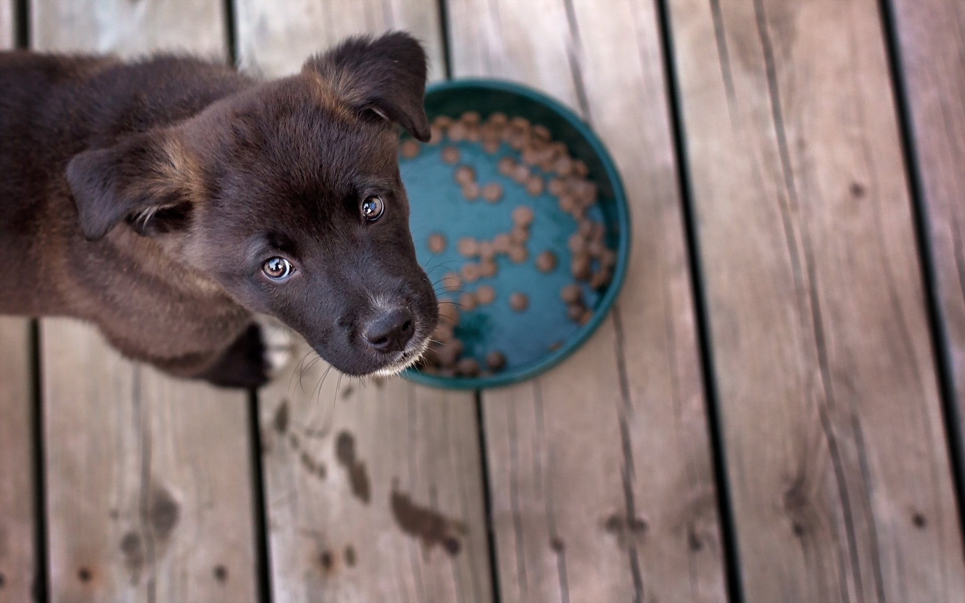 Cachorro después de comer con una mirada agradecida