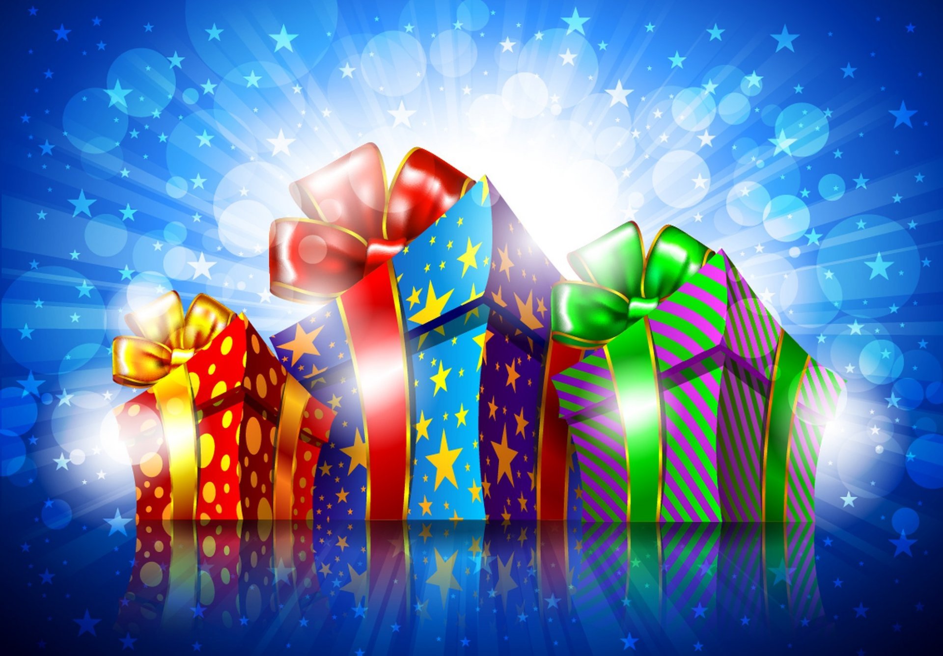 Para las vacaciones, muchos regalos coloridos con arcos