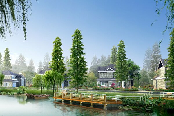 Una pequeña ciudad junto al río