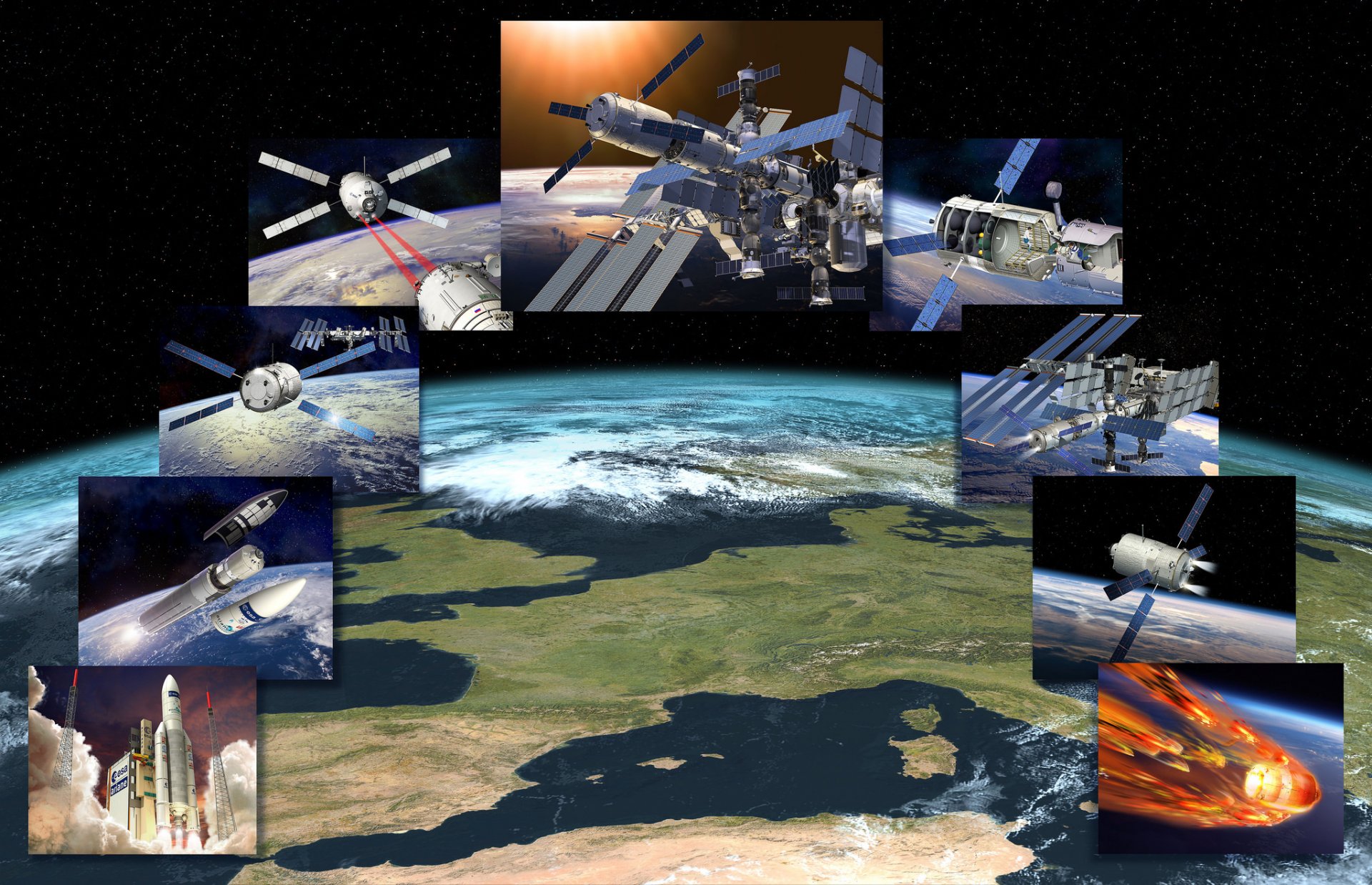 Meseta espacial, base, nave espacial y planeta en medio del frío cósmicoMeseta espacial, base, nave espacial y planeta en medio del frío cósmico