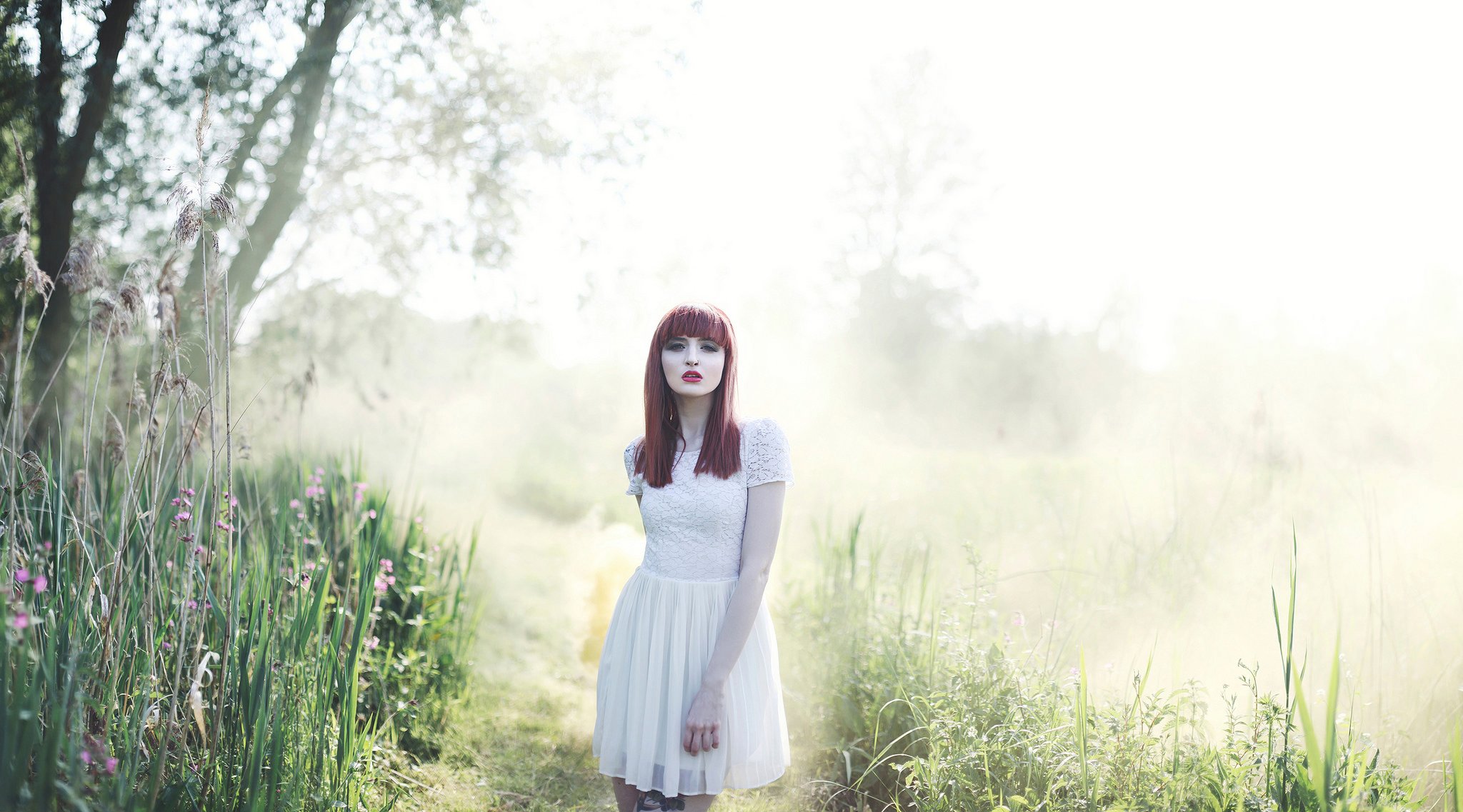 Niebla en el bosque y un hombre solitario caminando por el caminoNiebla en el bosque y un hombre solitario caminando por el camino