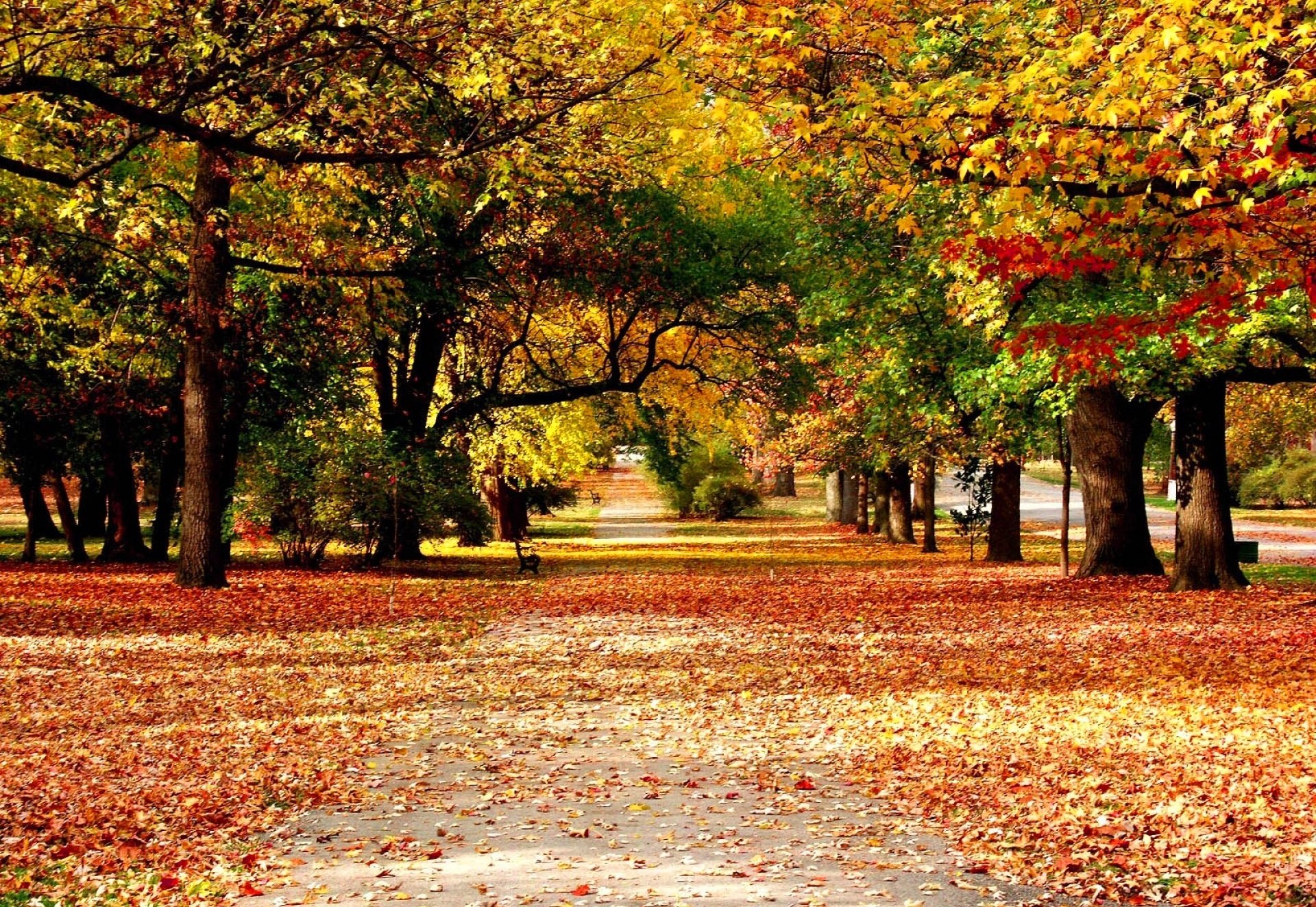 Camino de otoño que conduce a un bosque de cuento de hadas por las hojas caídasCamino de otoño que conduce a un bosque de cuento de hadas por las hojas caídas