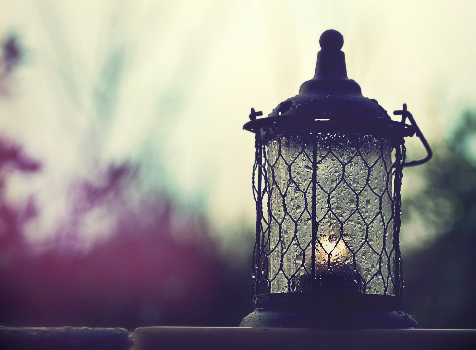 Linterna con una vela en el fondo del cielo nubladoLinterna con una vela en el fondo del cielo nublado