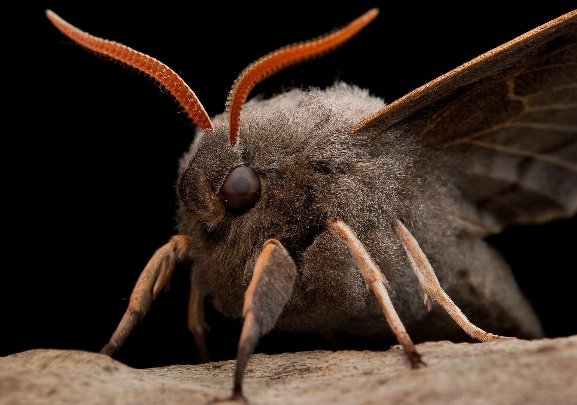 Ojos, zarcillos, patas de polilla en detalle