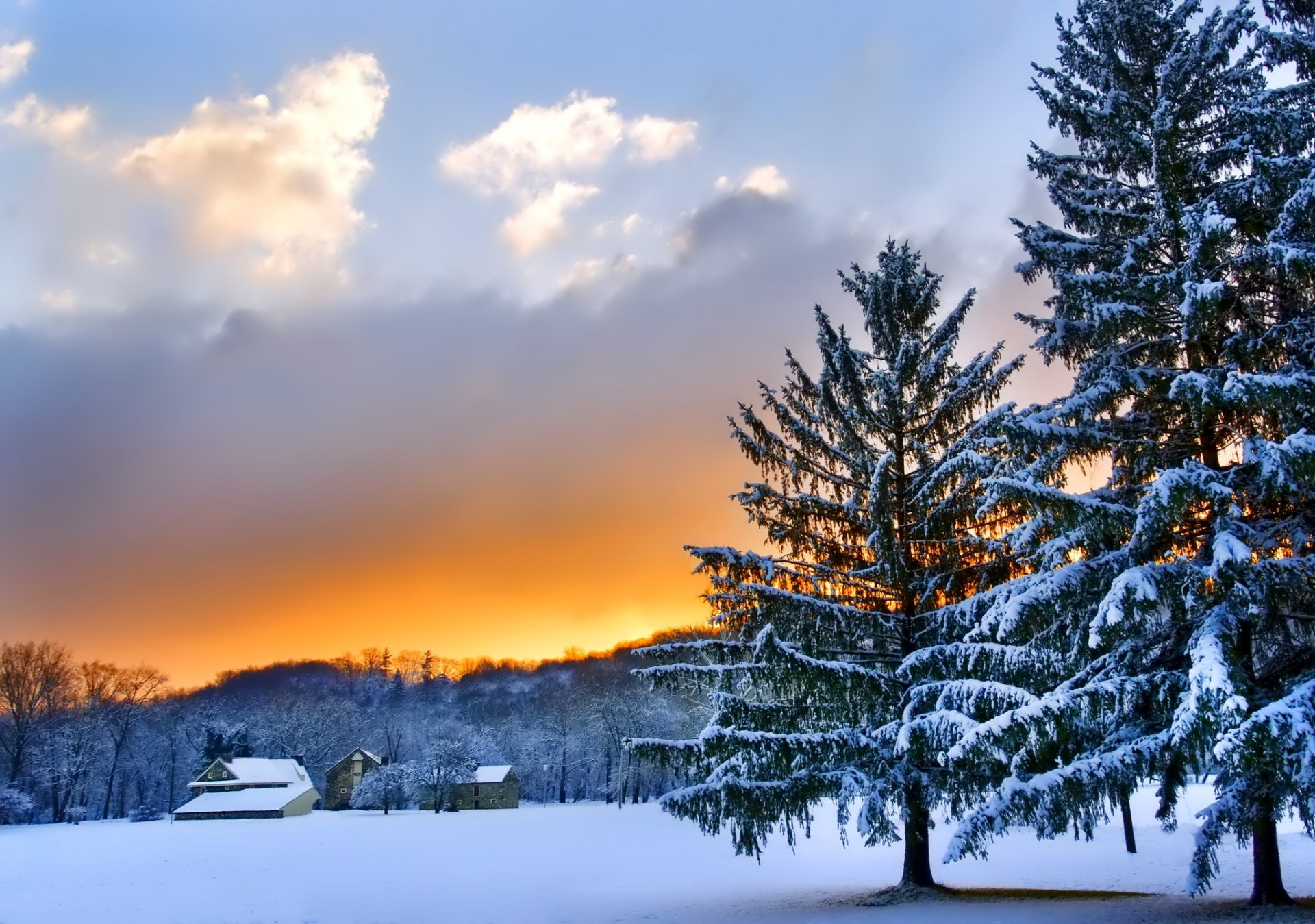 Paisaje de árboles desnudos en invierno al atardecerPaisaje de árboles desnudos en invierno al atardecer