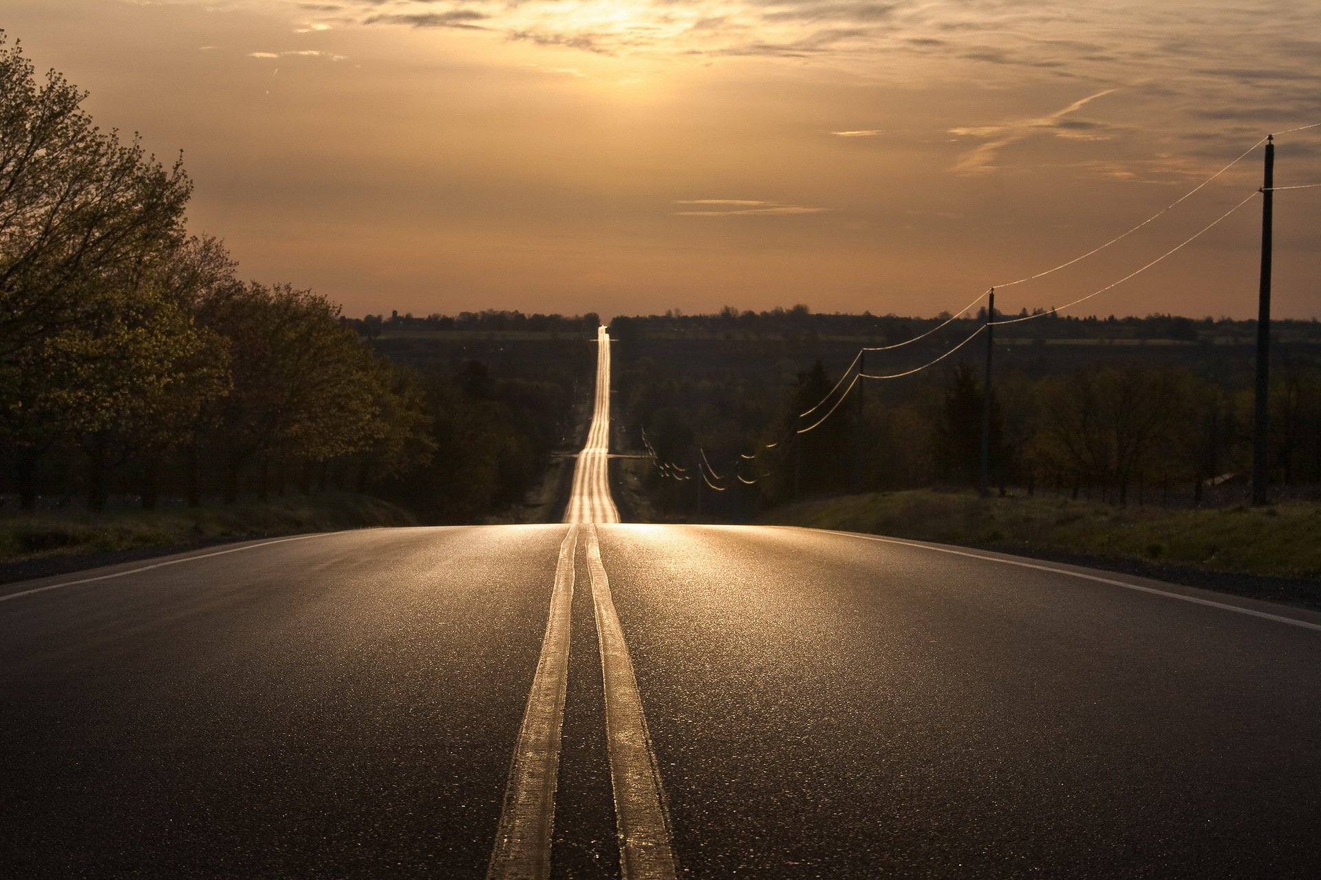 Paisaje de puesta de sol nocturna en la carretera