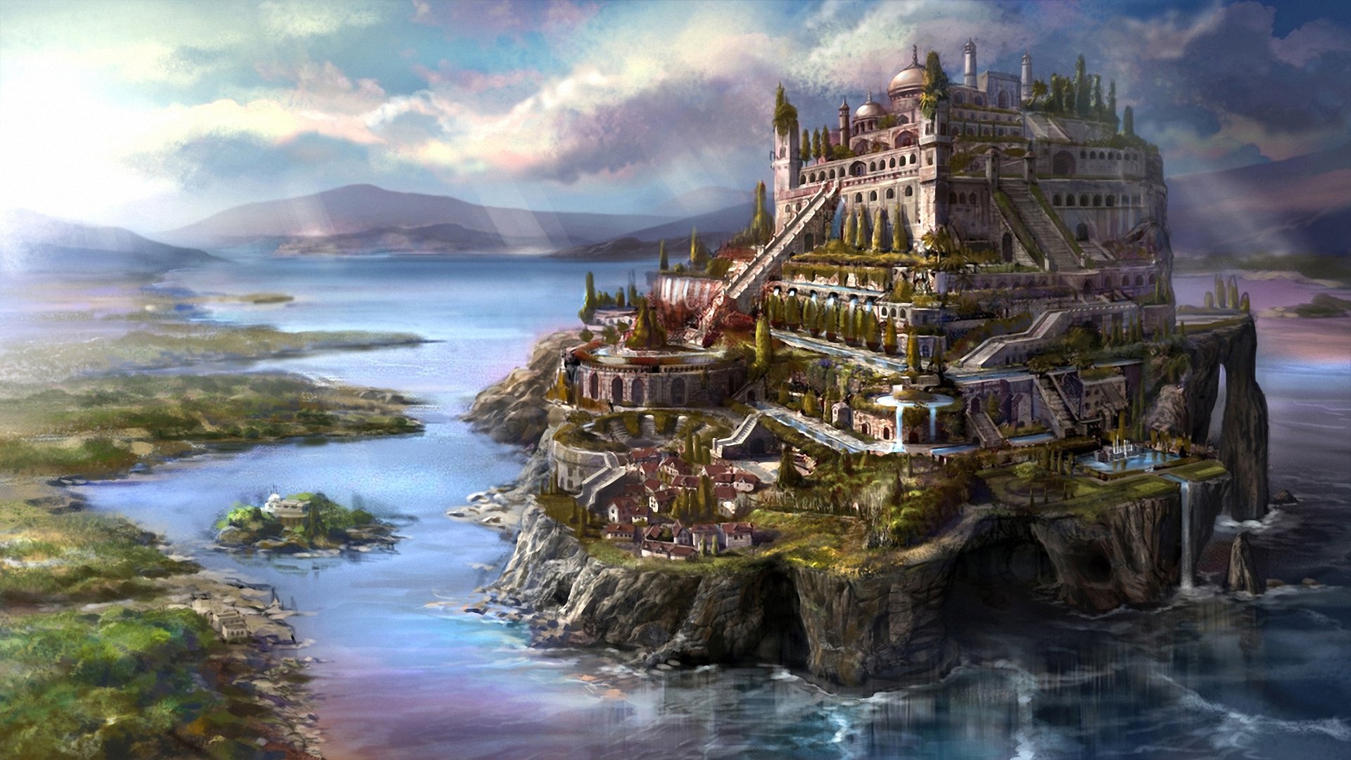 Palacio de la isla en medio del océano rodeado de aguaPalacio de la isla en medio del océano rodeado de agua