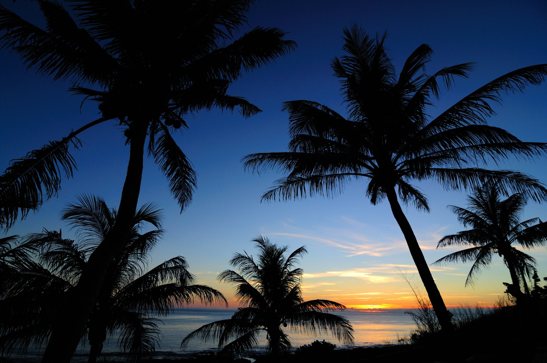 Dos deportivos de color azul reflejan las siluetas de las palmerasDos deportivos de color azul reflejan las siluetas de las palmeras