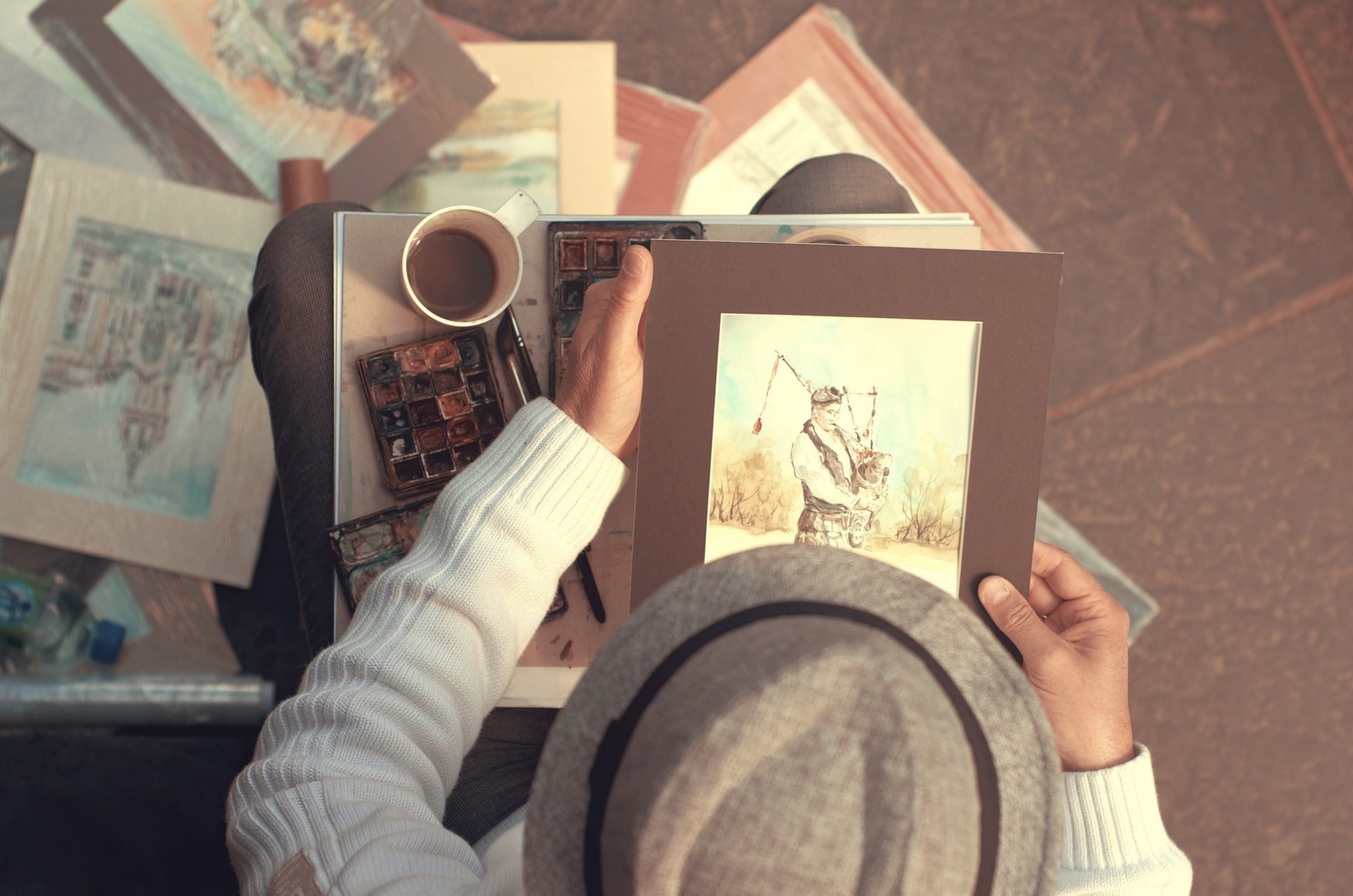 Foto del artista con un patrón en la parte superiorFoto del artista con un patrón en la parte superior
