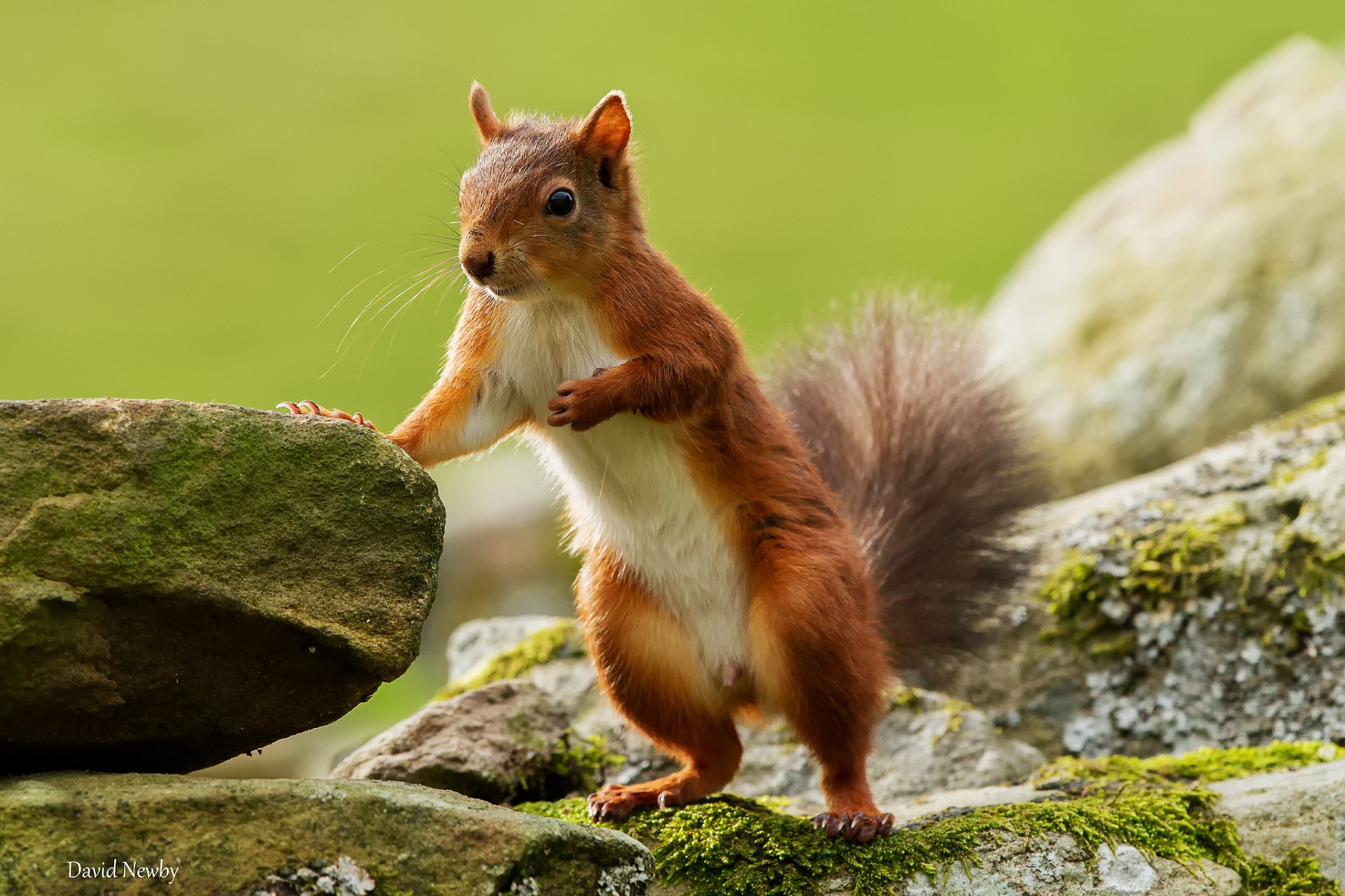 Ardilla de pie en sus patas traseras, sosteniendo una piedraArdilla de pie en sus patas traseras, sosteniendo una piedra