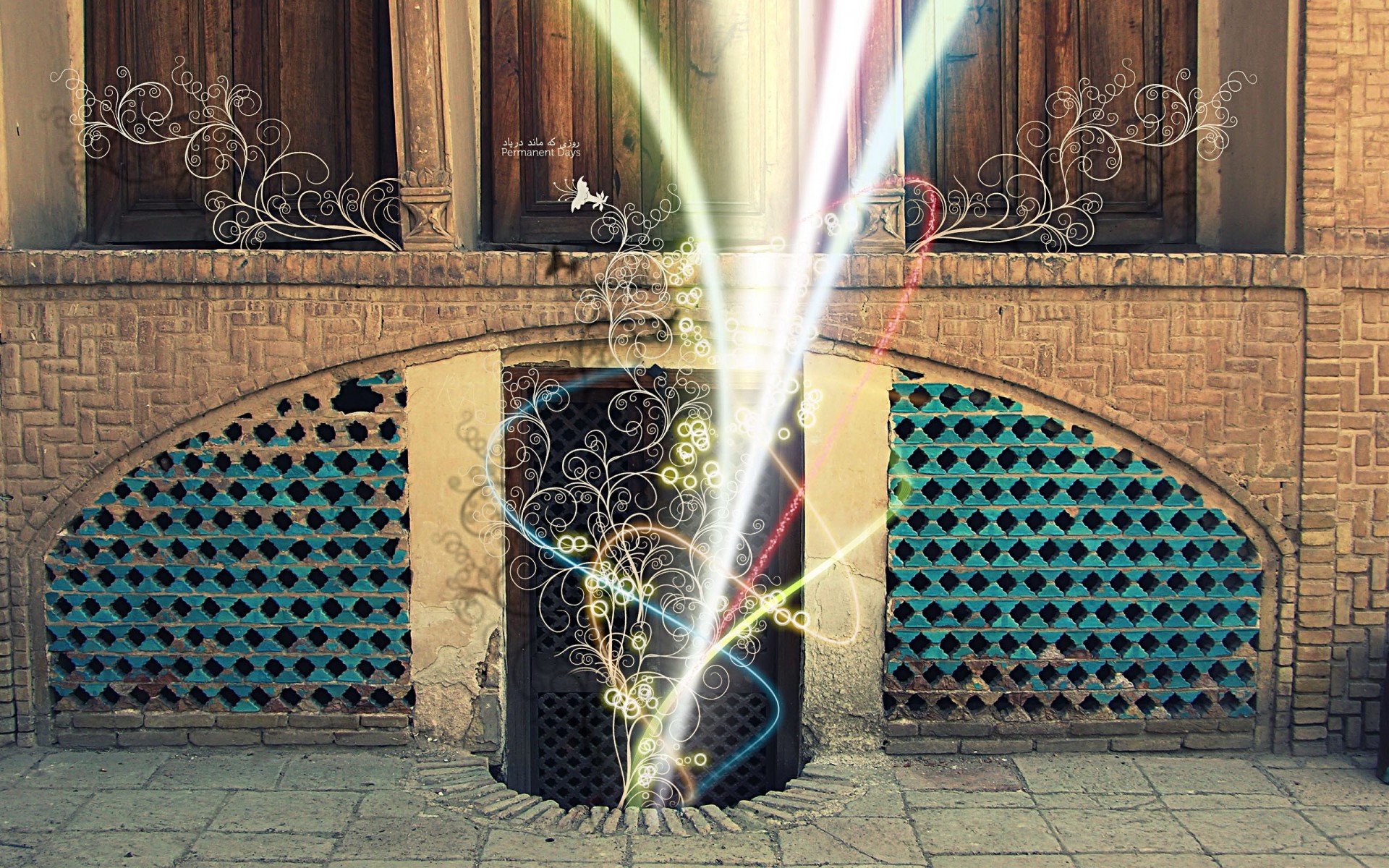 Fondo verde con líneas y colores