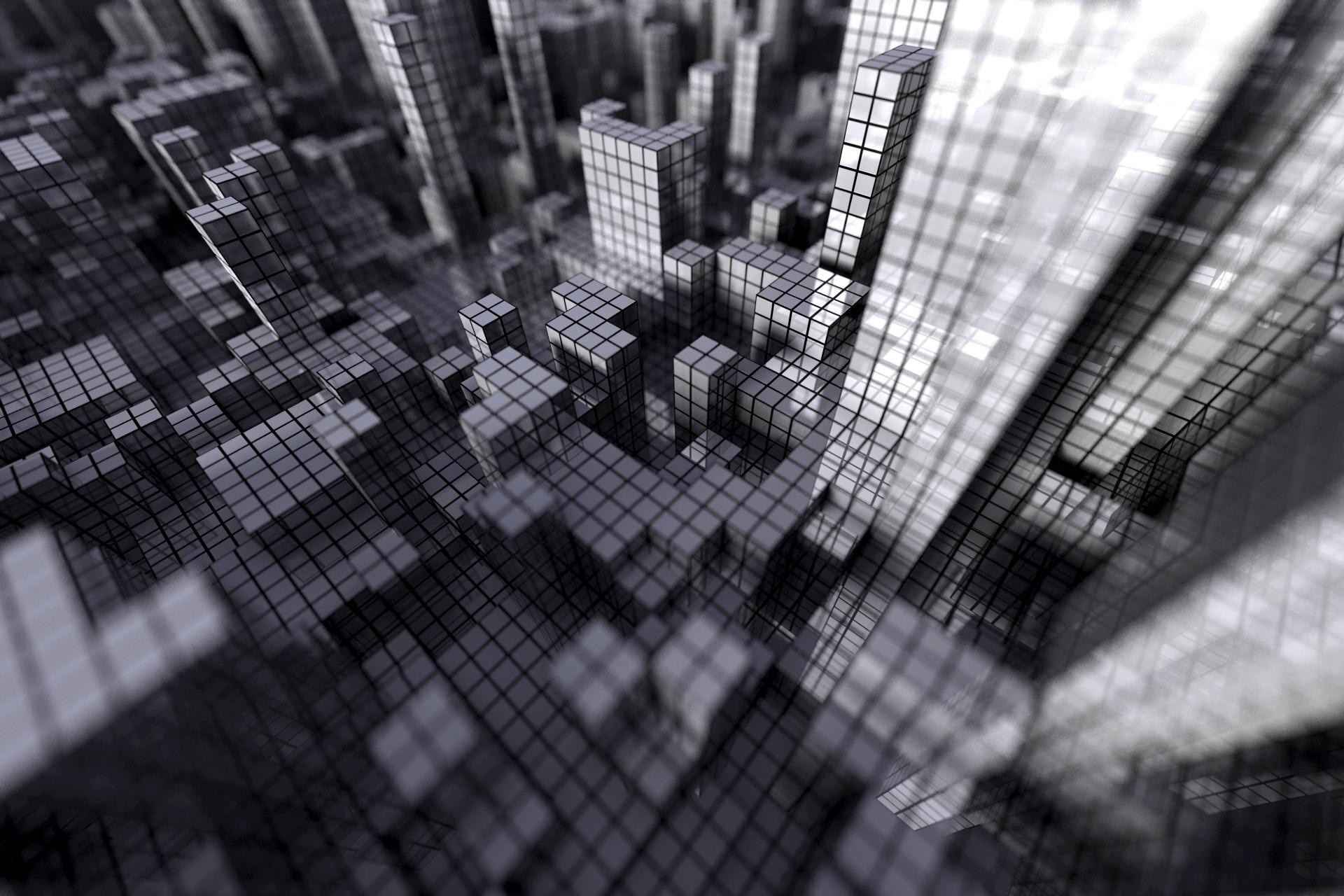 Muchas losas grises y paredes de diferentes tamaños, y un paraguas rojo al lado de una de ellas