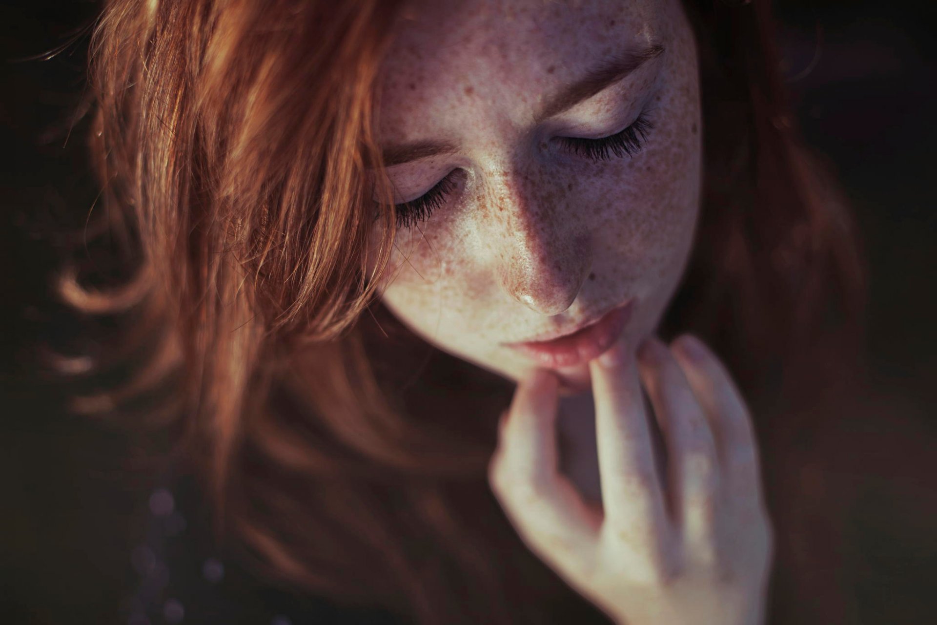 Pelirroja chica se sienta en la habitación en una sillaPelirroja chica se sienta en la habitación en una silla