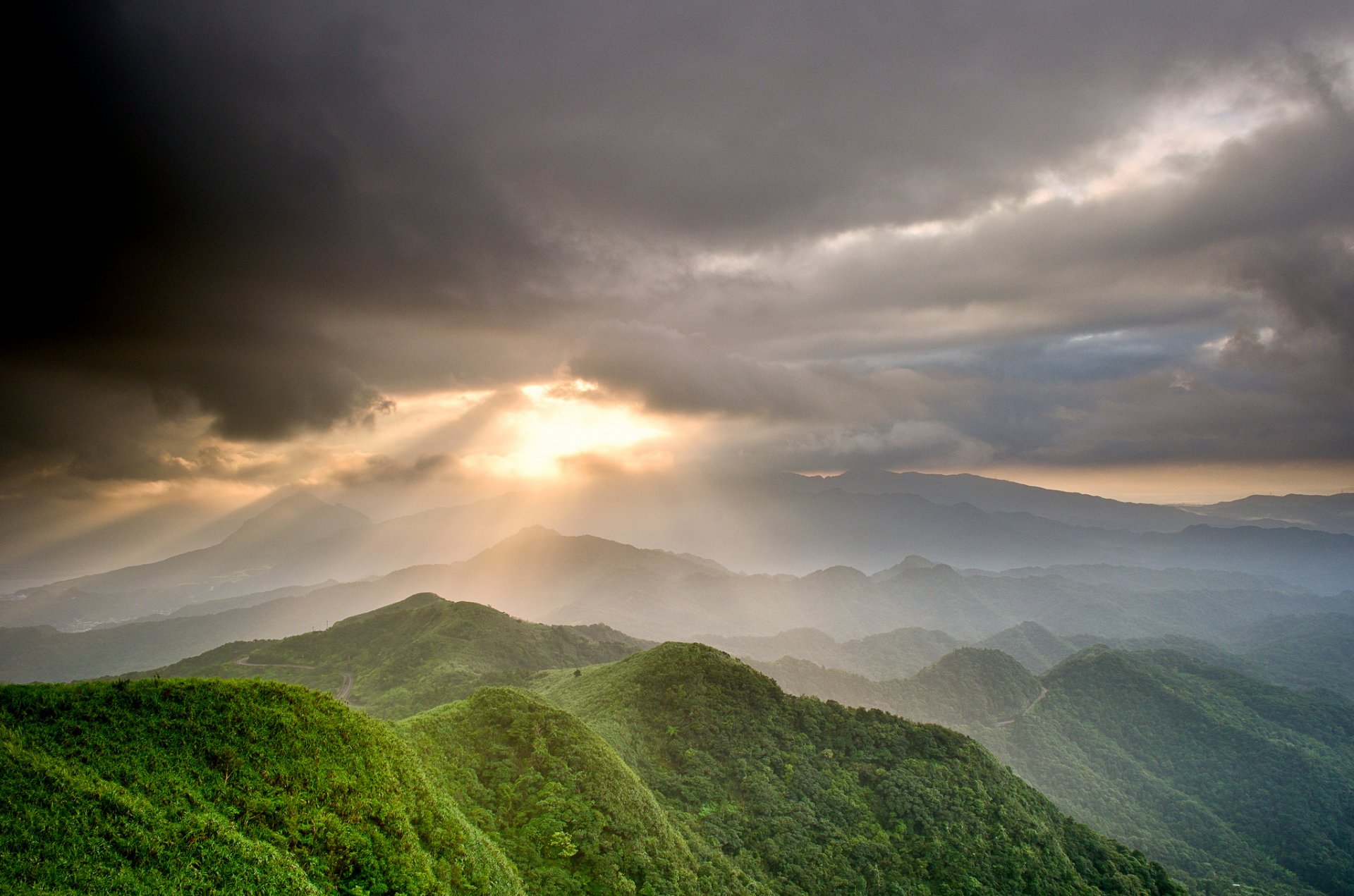 Paisaje del valle con una cascada que se extiende sobre él