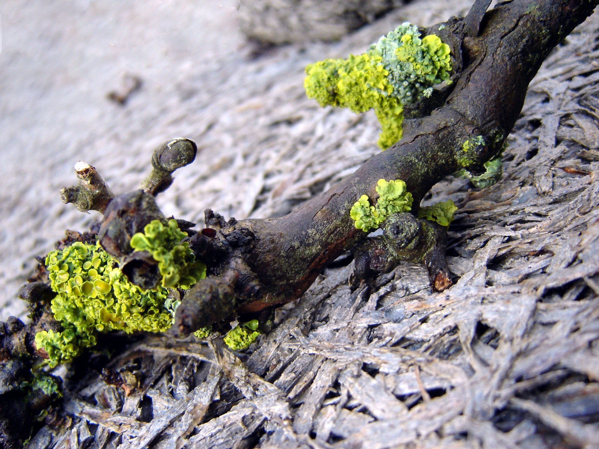 Musgo y hierba que crecen en una rama en el bosqueMusgo y hierba que crecen en una rama en el bosque