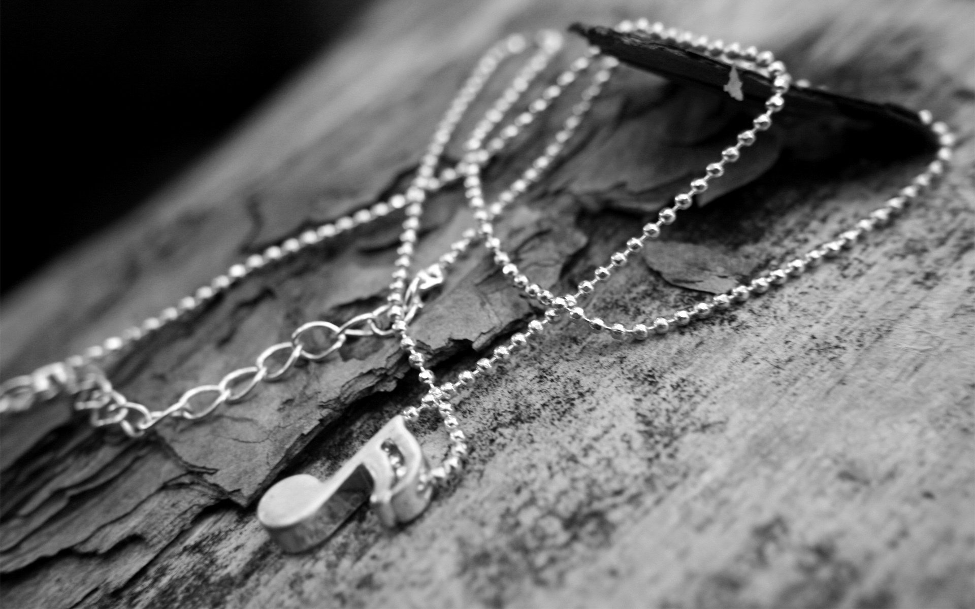 Cadena colgante con nota colgante en la corteza