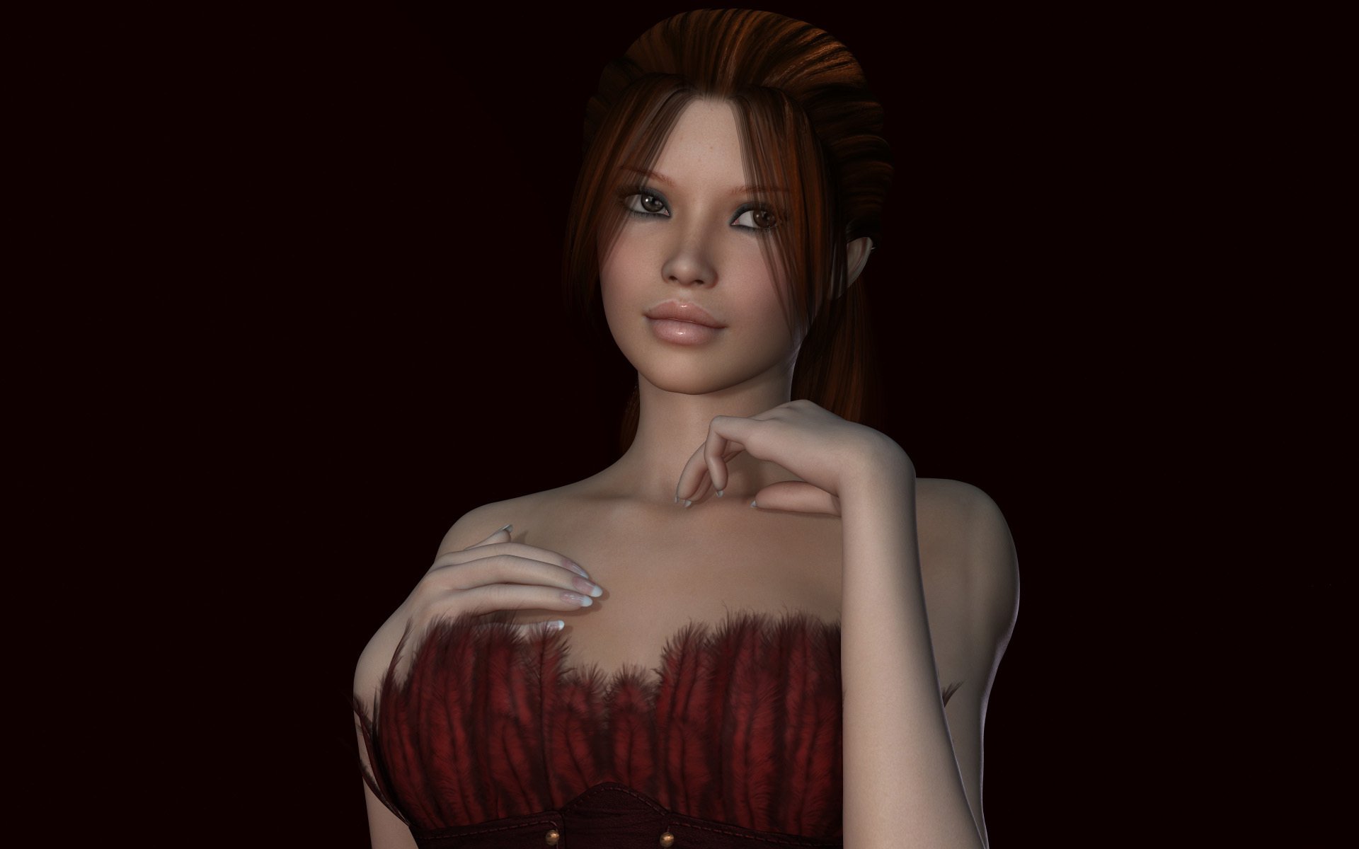 Imagen tridimensional en el estilo de juego de una chica con plumas sobre un fondo negroImagen tridimensional en el estilo de juego de una chica con plumas sobre un fondo negro