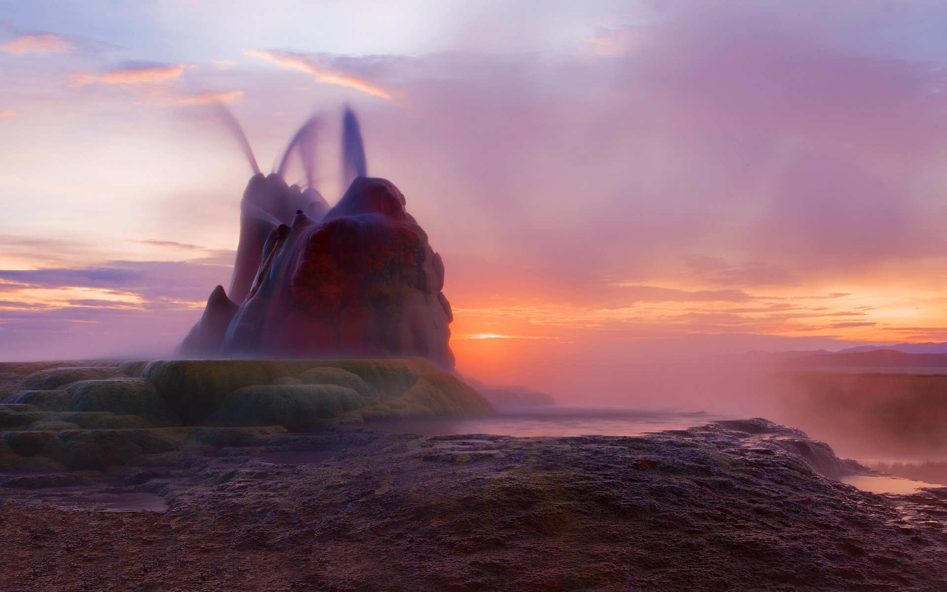 Pradera floreciente al atardecer