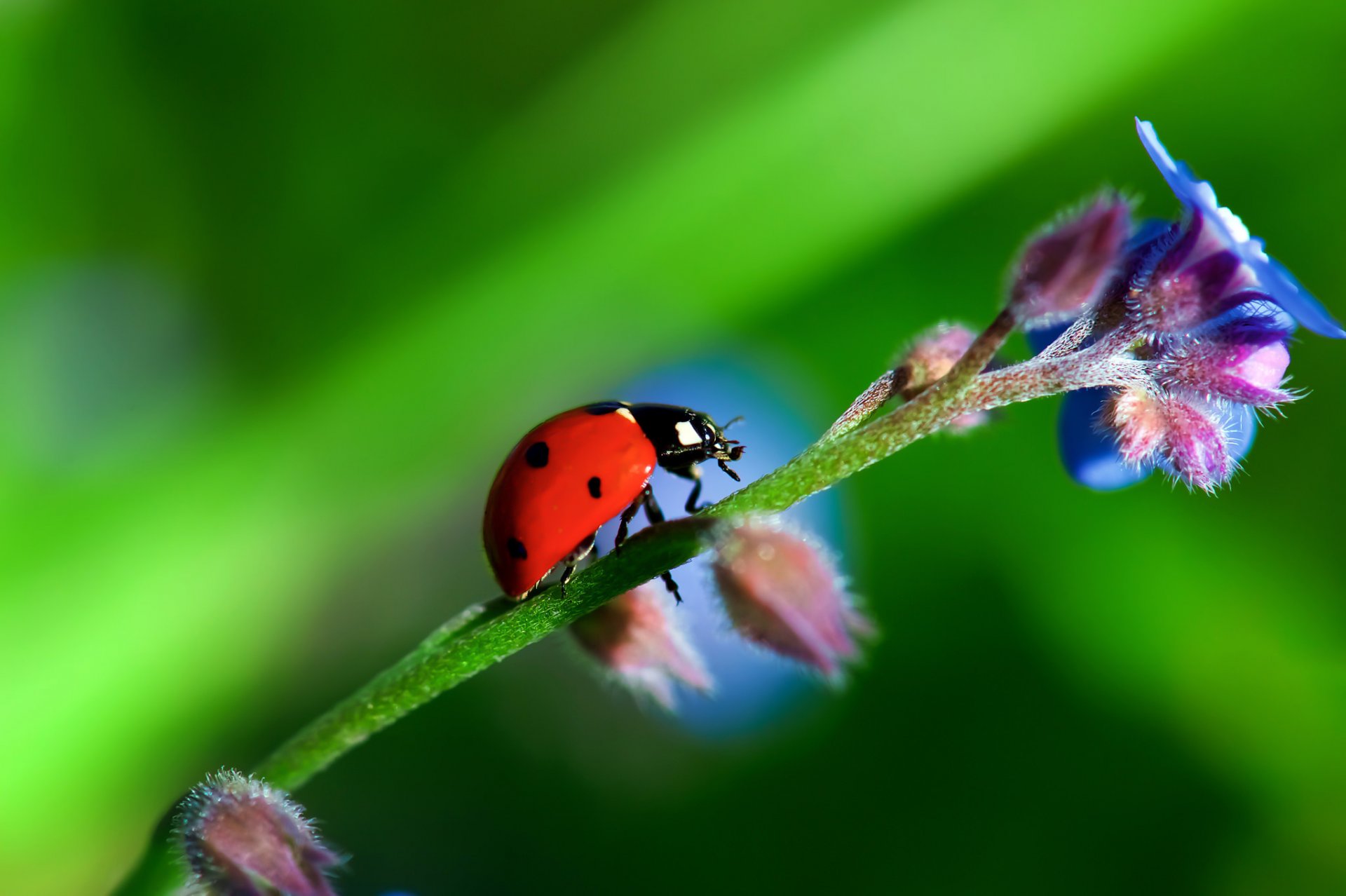 Vuela en gotas de rocío sobre un fondo borroso. macrofotografíaVuela en gotas de rocío sobre un fondo borroso. Macrofotografía