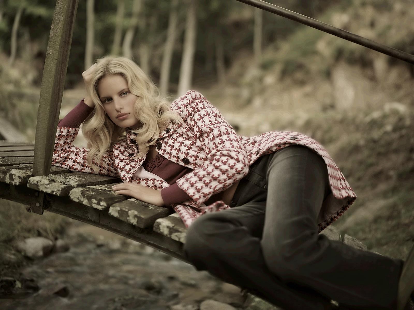 Casa de pie en la orilla del río y el puente con linternasCasa de pie en la orilla del río y el puente con linternas