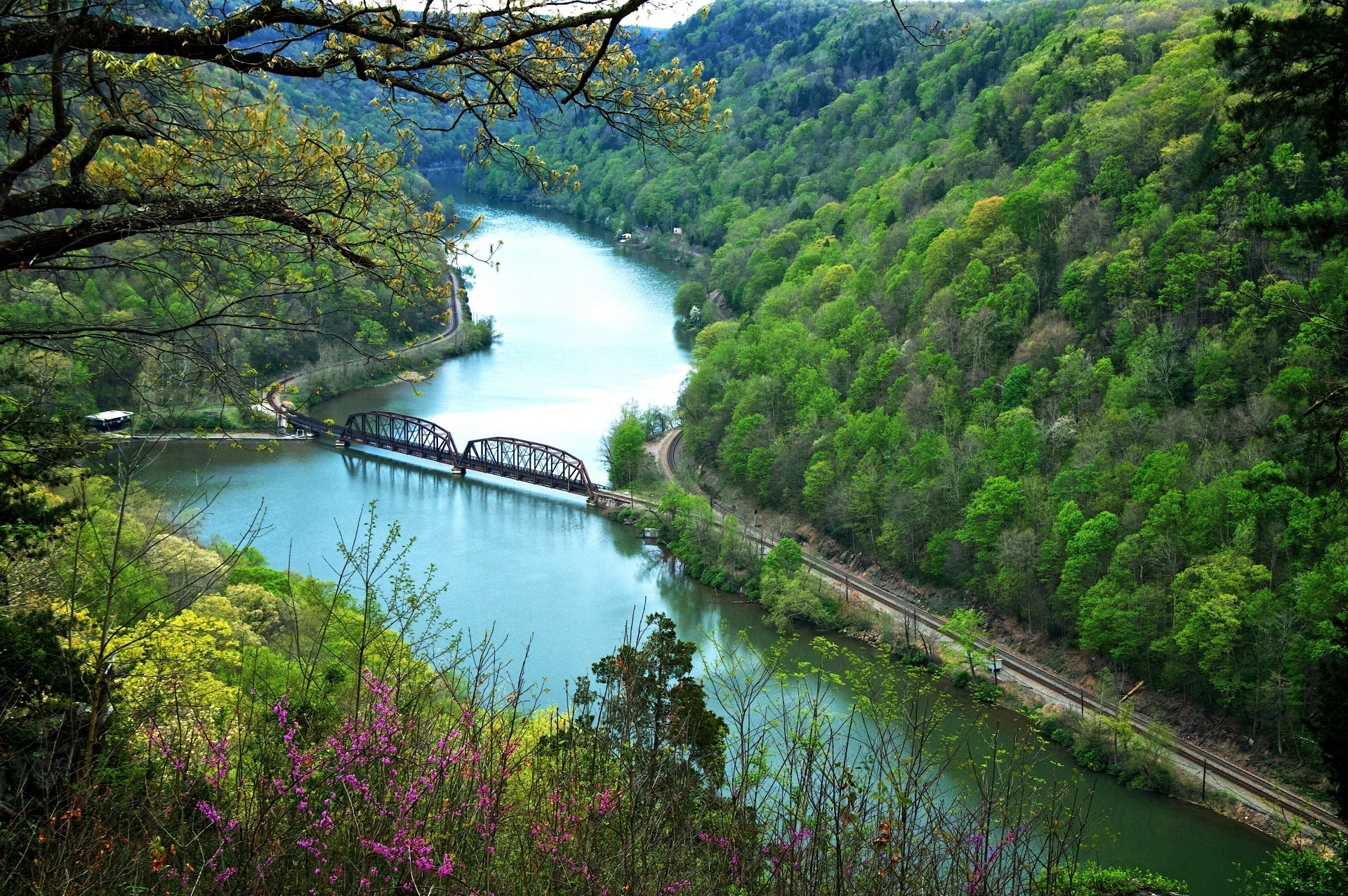 El río y el puente de la ladera de la montaña en coloresEl río y el puente de la ladera de la montaña en colores