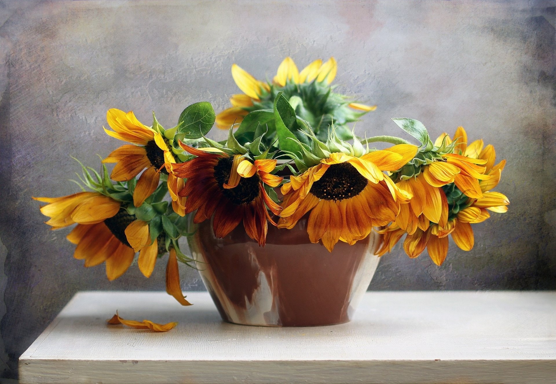 Un ramo de flores favoritas de crisantemos y gerber en una jarraUn ramo de flores favoritas de crisantemos y Gerber en una jarra