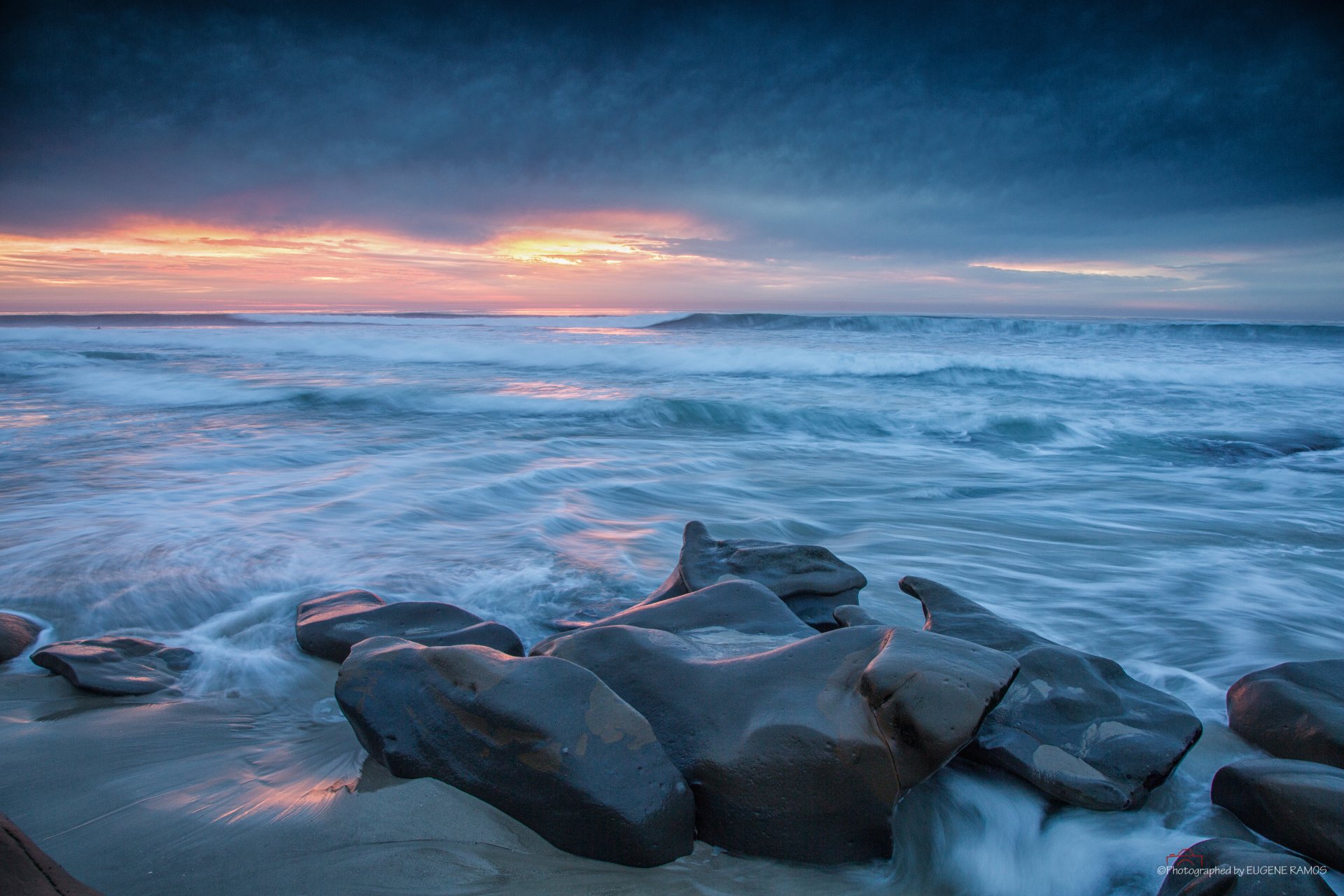 Cielo nublado. Rocas. Verdes en tierra naranja